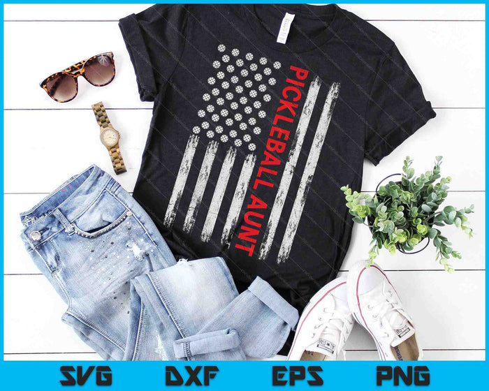 Vintage Pickleball Aunt USA Flag SVG PNG Digital Printable Files