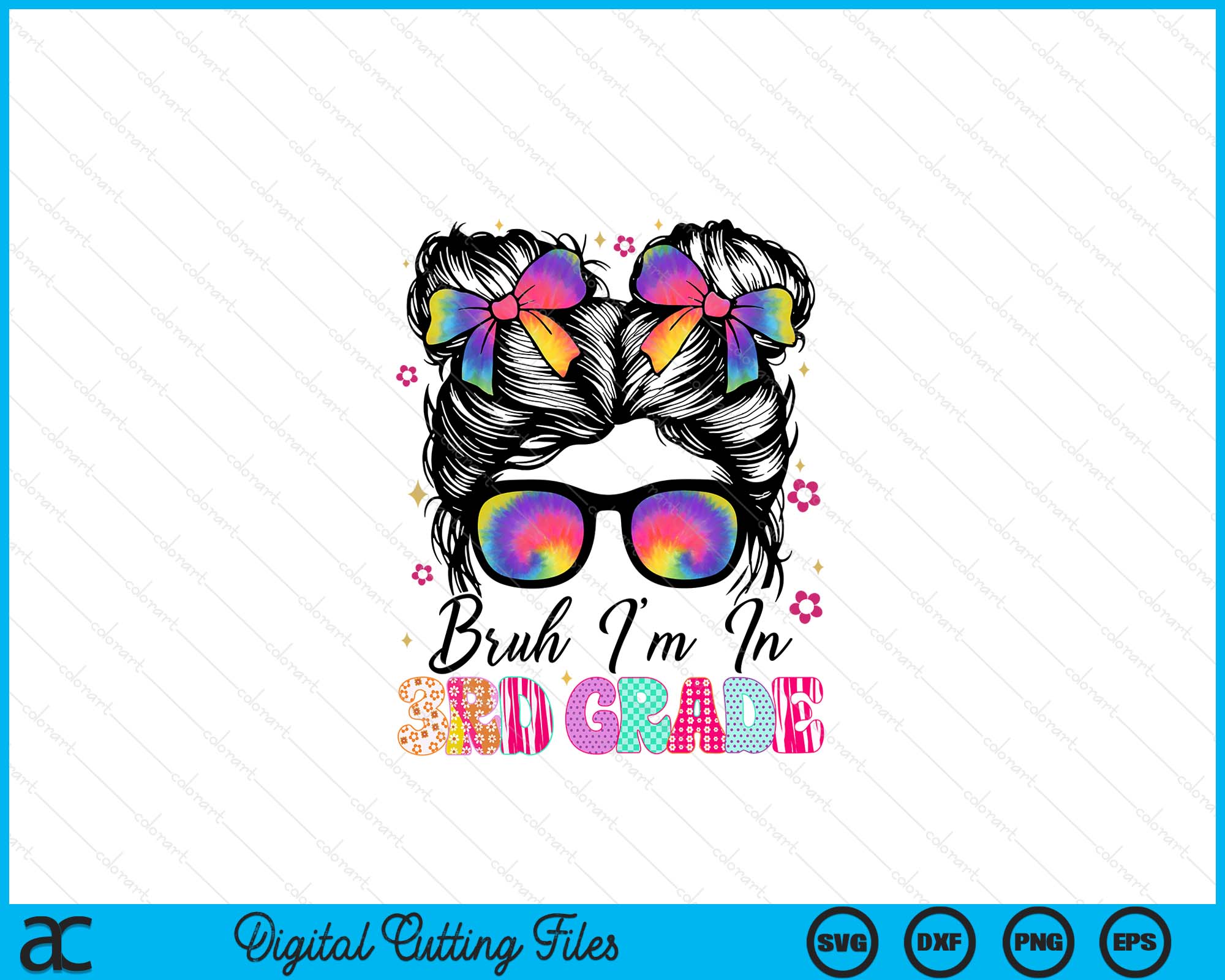 Bruh Im In 3rd Grade Messy Bun First Day Of School Girls SVG PNG Digital Printable Files