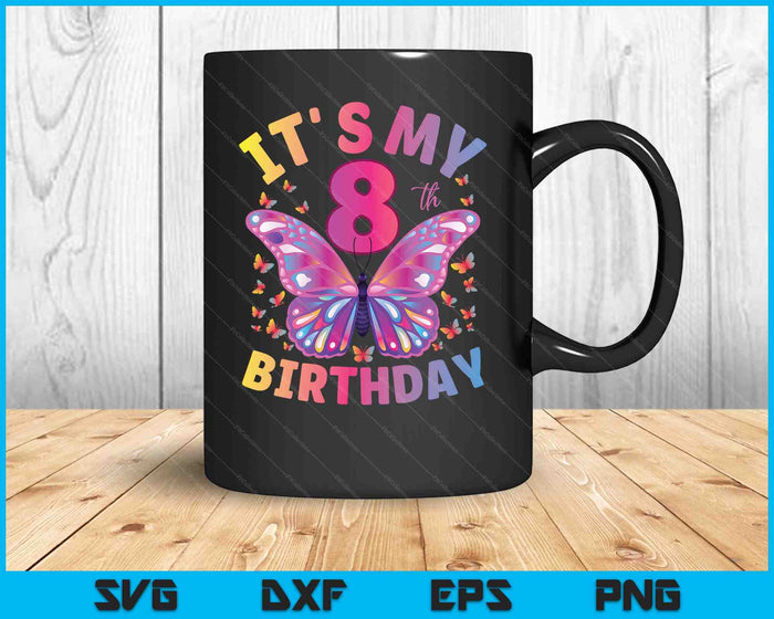 8th Birthday Shirt For Girls 8 Year Old Butterfly Birthday SVG PNG Digital Printable Files