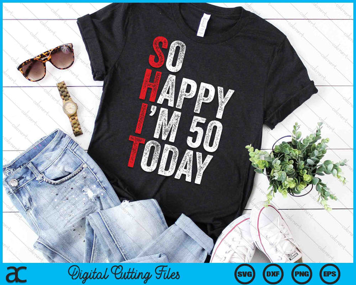 So Happy I'm 50 Today Funny 50th Birthday Jokes SVG PNG Digital Cutting Files