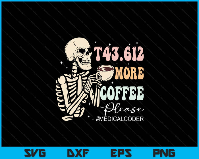 T43.612 More Coffee Please Medical Coder Skeleton Halloween SVG PNG Digital Printable Files