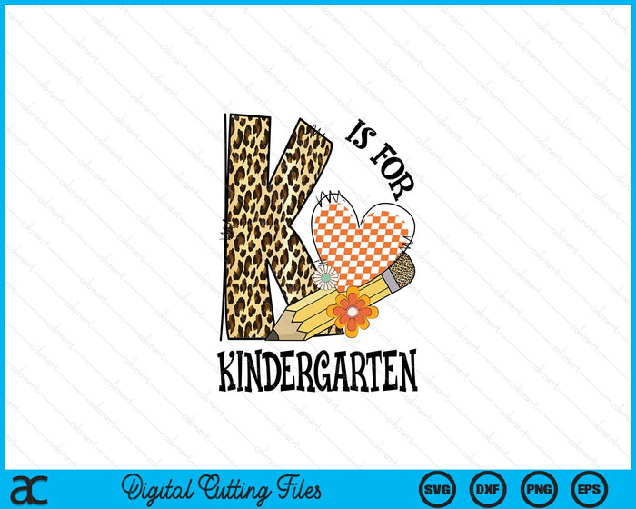 K Is For Kindergarten Teacher Leopard First Day Of School SVG PNG Digital Cutting Files