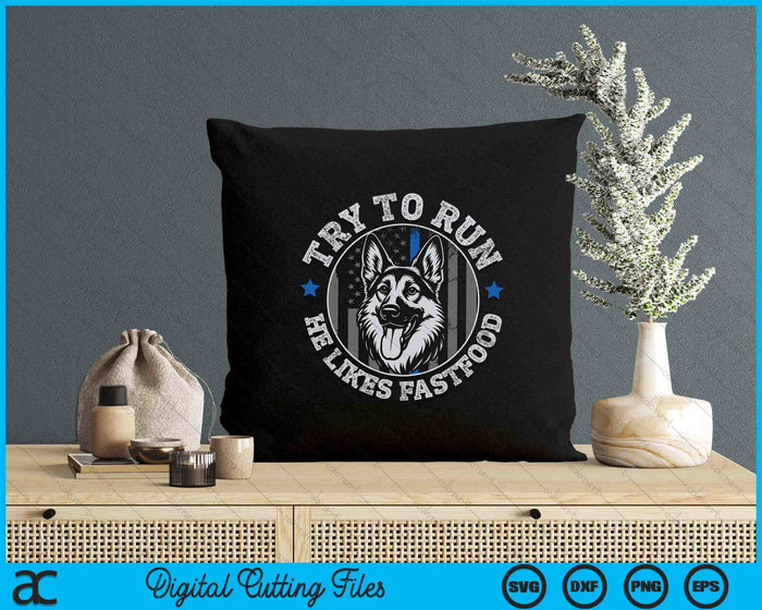 K9 Police Officer Blue Line Try To Run K9 Police Dog SVG PNG Digital Printable Files