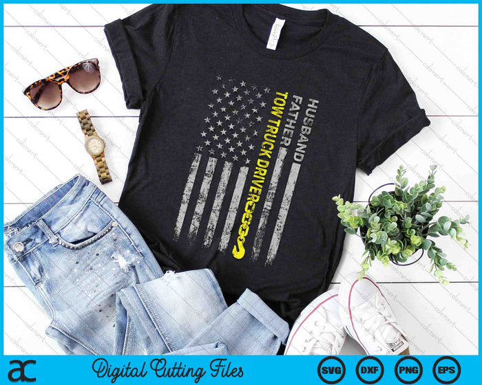 Husband Father Tow Truck Driver American Flag SVG PNG Digital Cutting Files