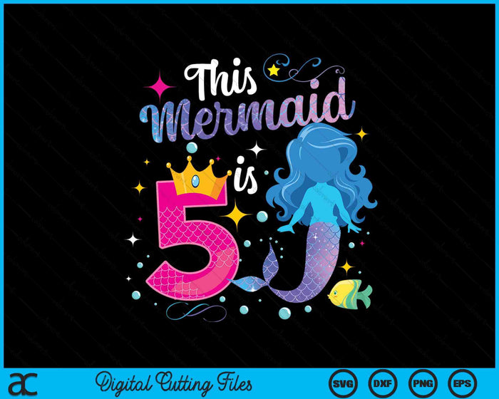 5 Year Old This Mermaid Is 5th Birthday Girl SVG PNG Digital Printable Files