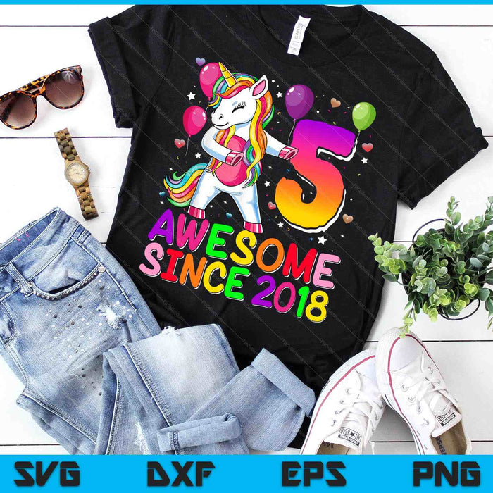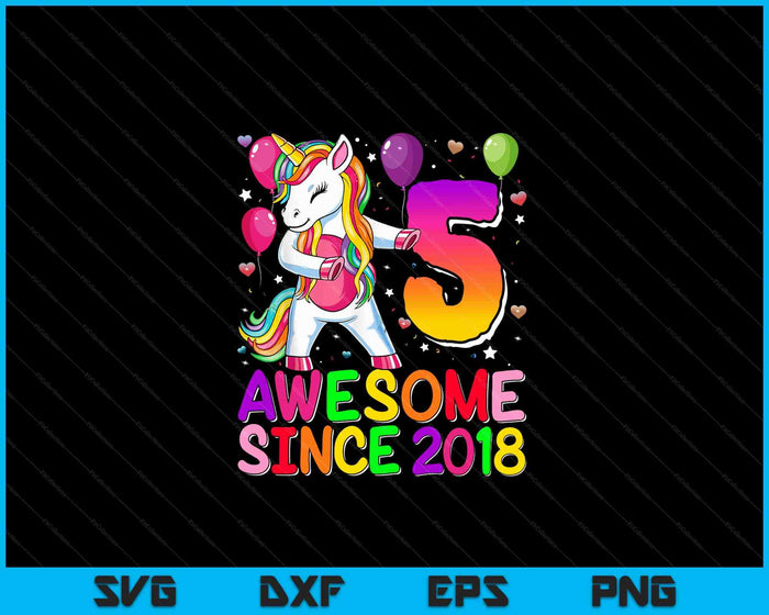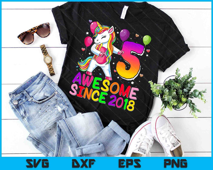 5 Years Old Unicorn Flossing 5th Birthday Girl Unicorn Party SVG PNG Digital Cutting Files