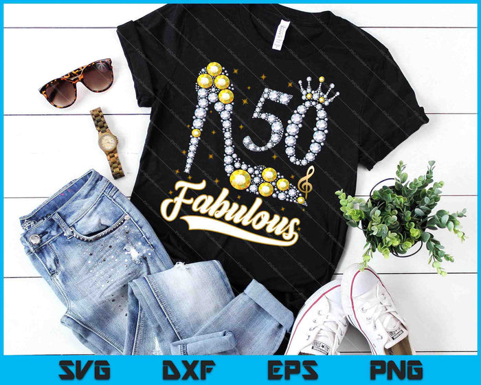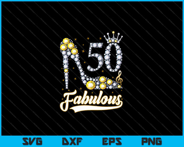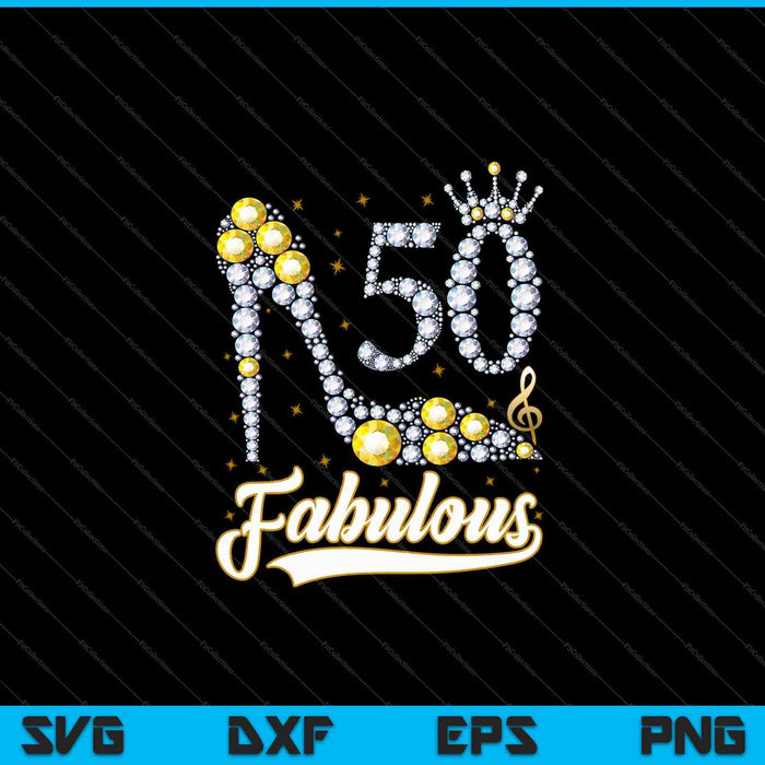 50 & Fabulous 50 Years Old 50th Birthday Diamond SVG PNG Cutting Printable Files
