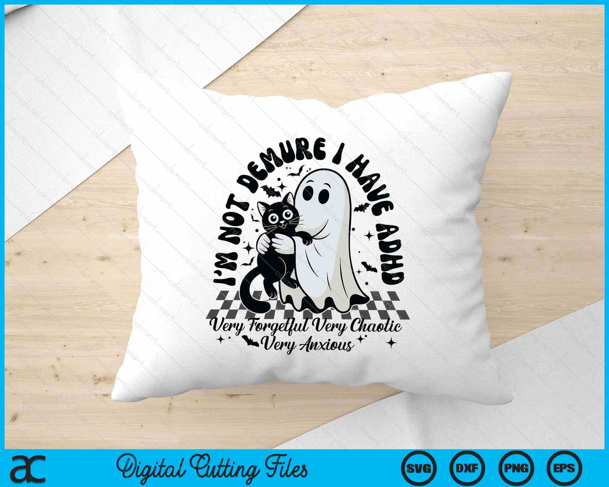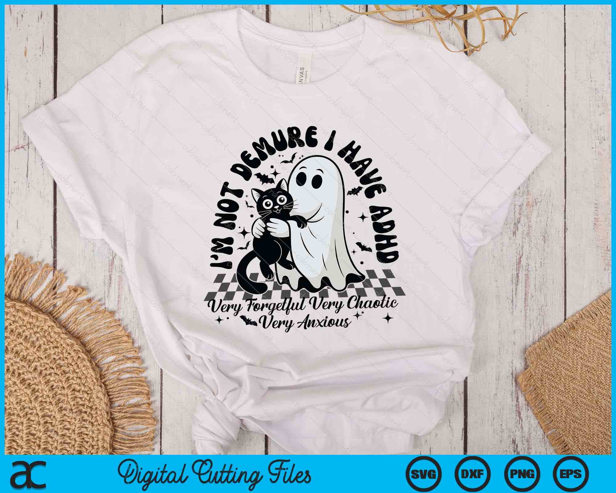 I'm Not Demure I Have Adhd Ghost And Cat Halloween SVG PNG Digital Printable Files