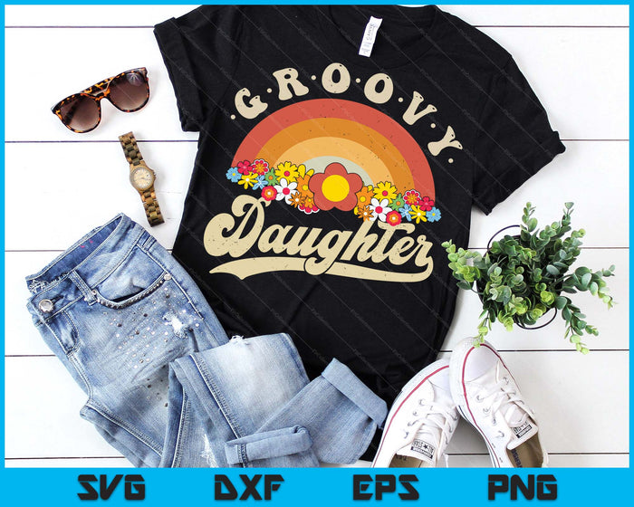 Groovy Daughter Retro Rainbow Colorful Flowers Design SVG PNG Digital Printable Files