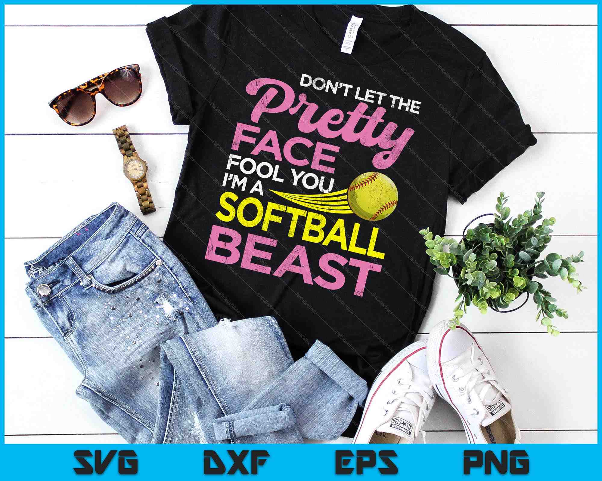 Funny Softball Girl With Pretty Face SVG PNG Digital Printable Files