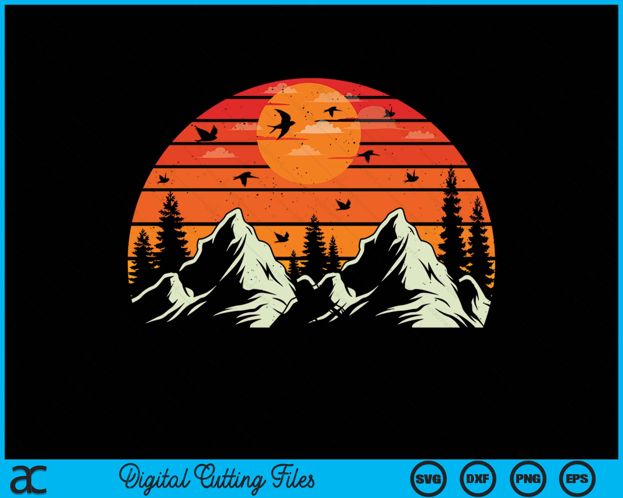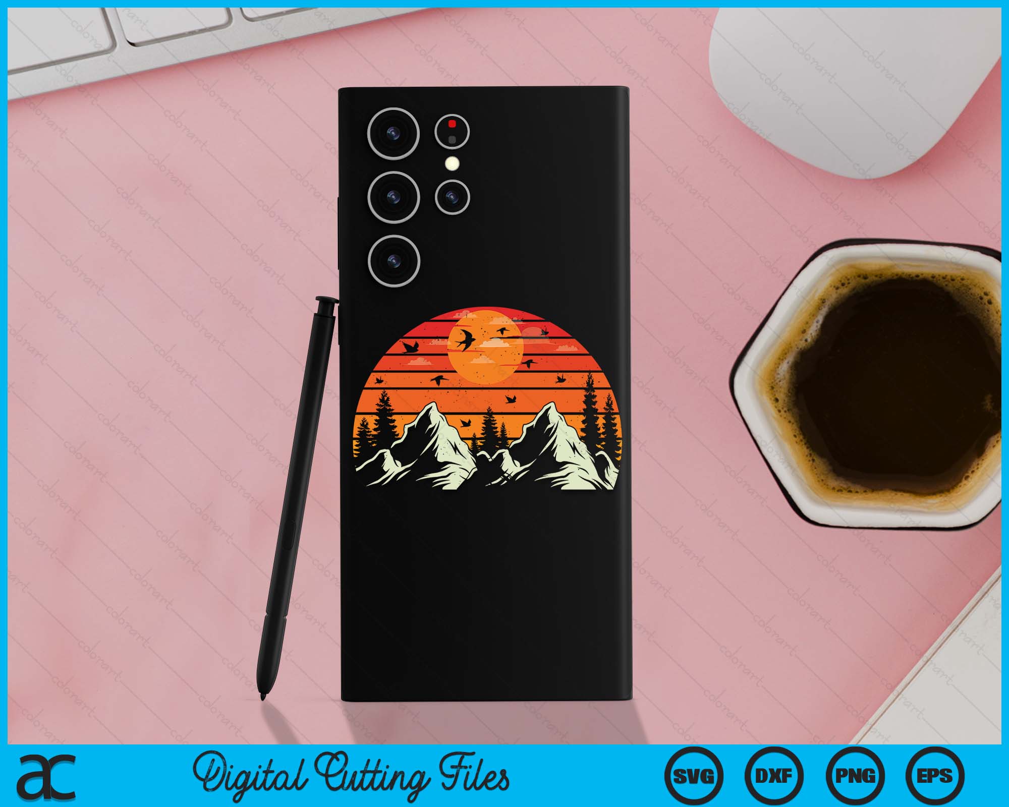 Retro Sunset Mountains & Trees For Campers Case SVG PNG Digital Cutting Files