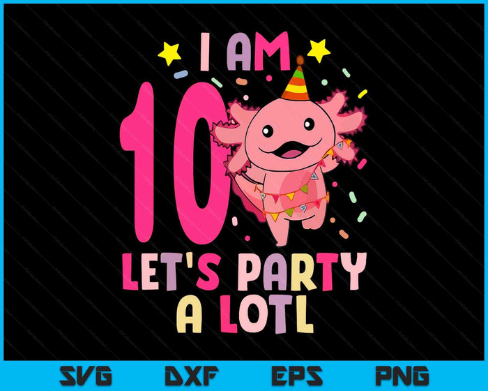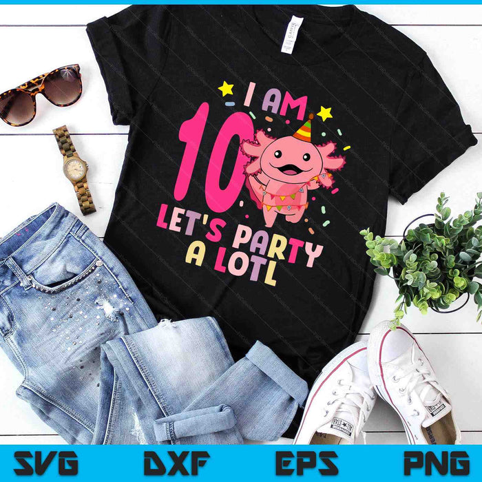 Kids Axolotl 10th Birthday Shirt - I m 10 Lets Party Alotl SVG PNG Digital Printable Files