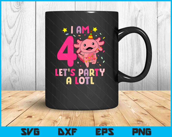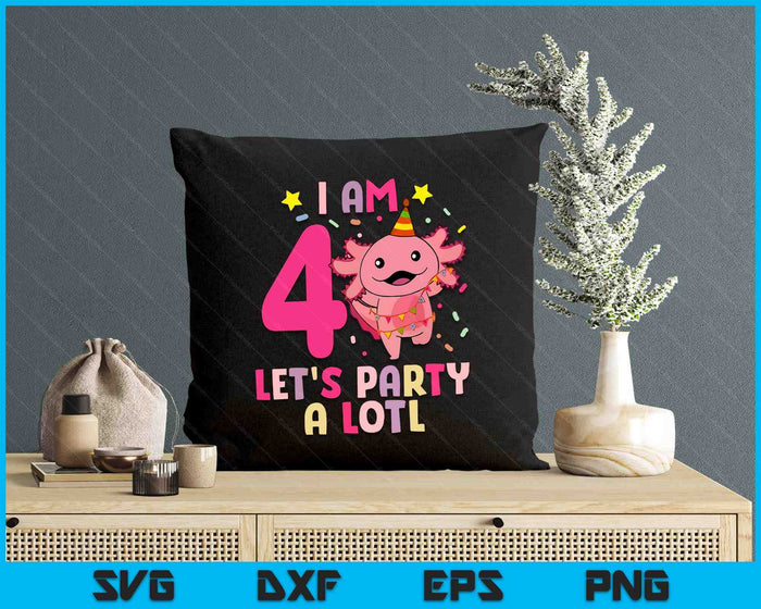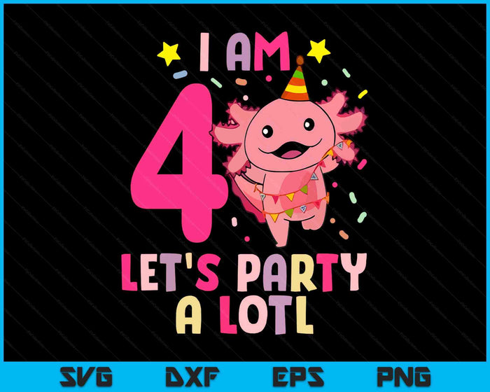 Kids Axolotl 4th Birthday Shirt - I m 4 Lets Party Alotl SVG PNG Digital Printable Files