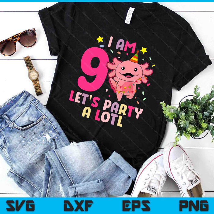 Kids Axolotl 9th Birthday Shirt - I m 9 Lets Party Alotl SVG PNG Digital Printable Files