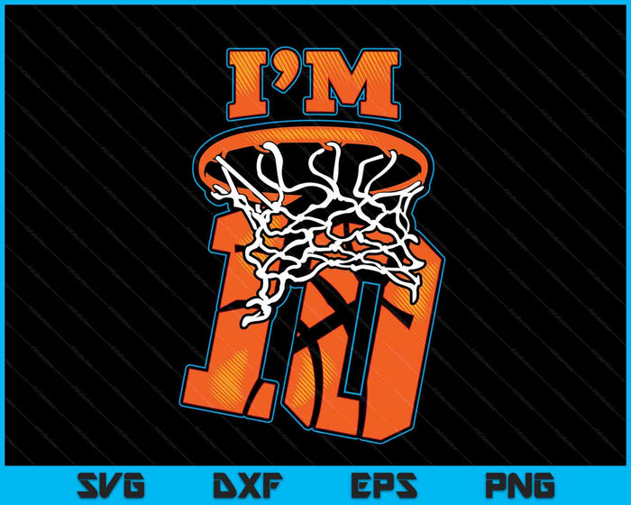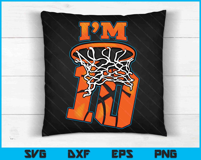 Kids Basketball I'm 10 Boy Girl 10th Birthday Gift SVG PNG Digital Cutting Files
