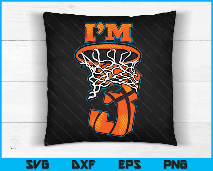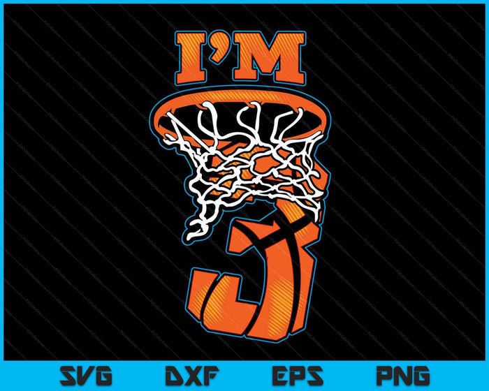 Kids Basketball I'm 3 Boy Girl 3th Birthday Gift SVG PNG Digital Cutting Files