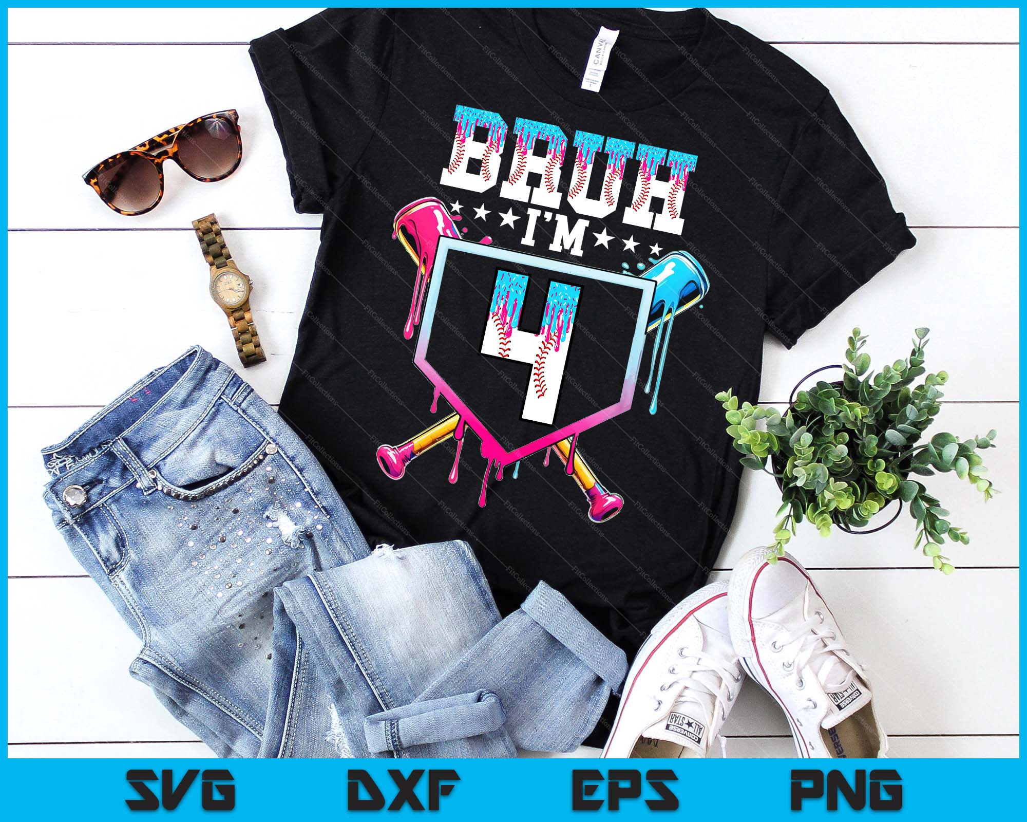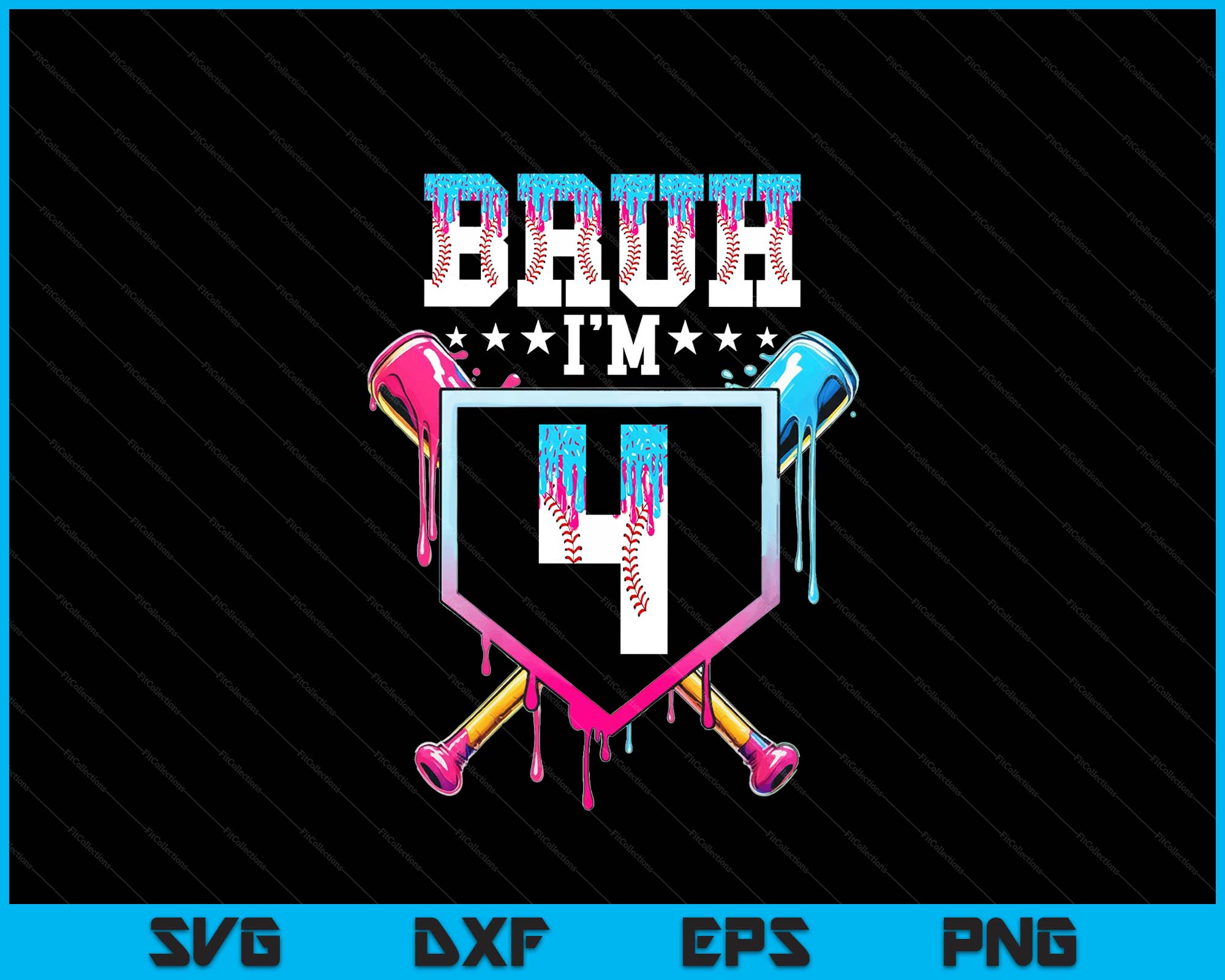Bruh 4th Birthday Boy Baseball Ice Cream Drip 4 Year Old Boy SVG PNG Digital Printable Files