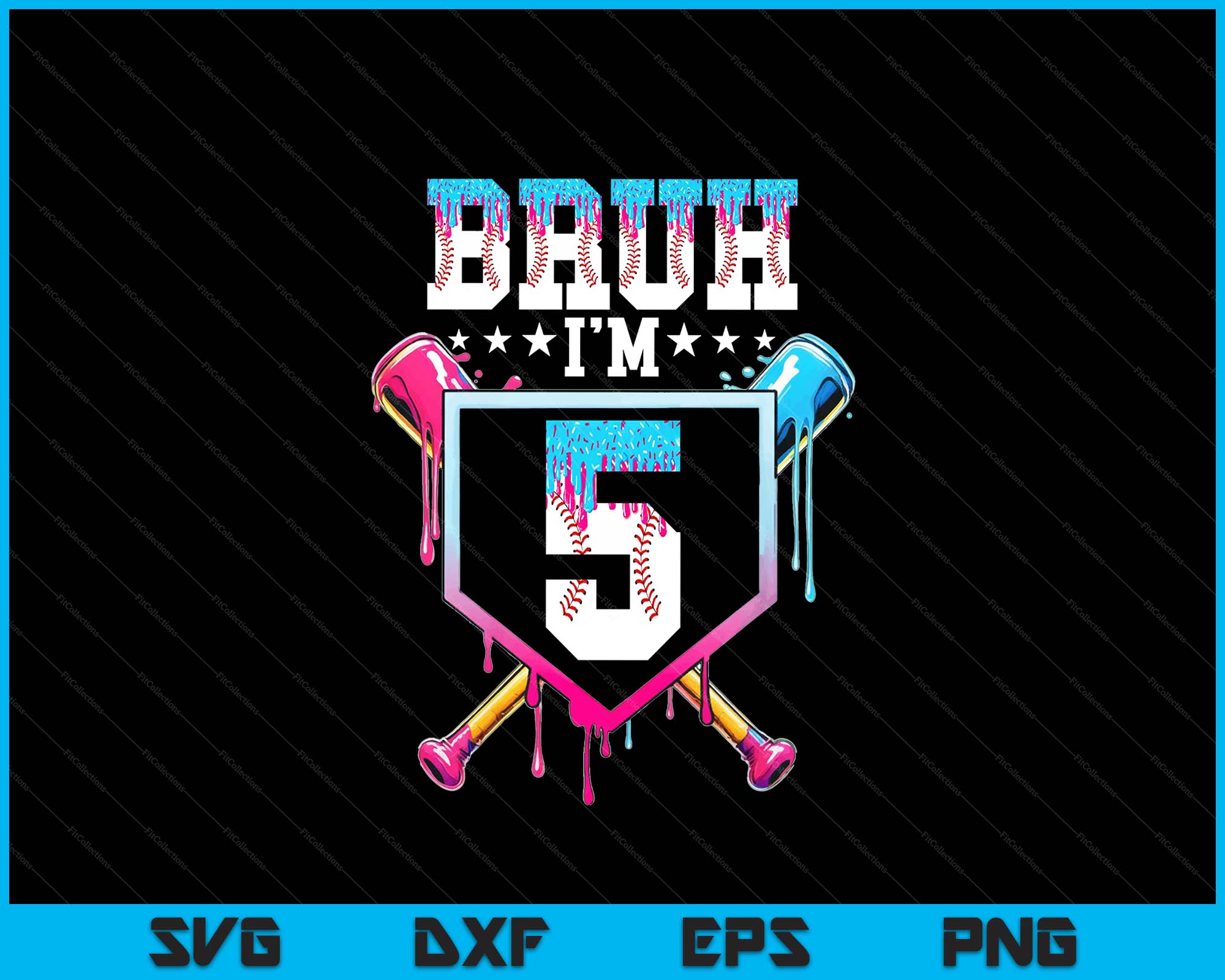 Bruh 5th Birthday Boy Baseball Ice Cream Drip 5 Year Old Boy SVG PNG Digital Printable Files