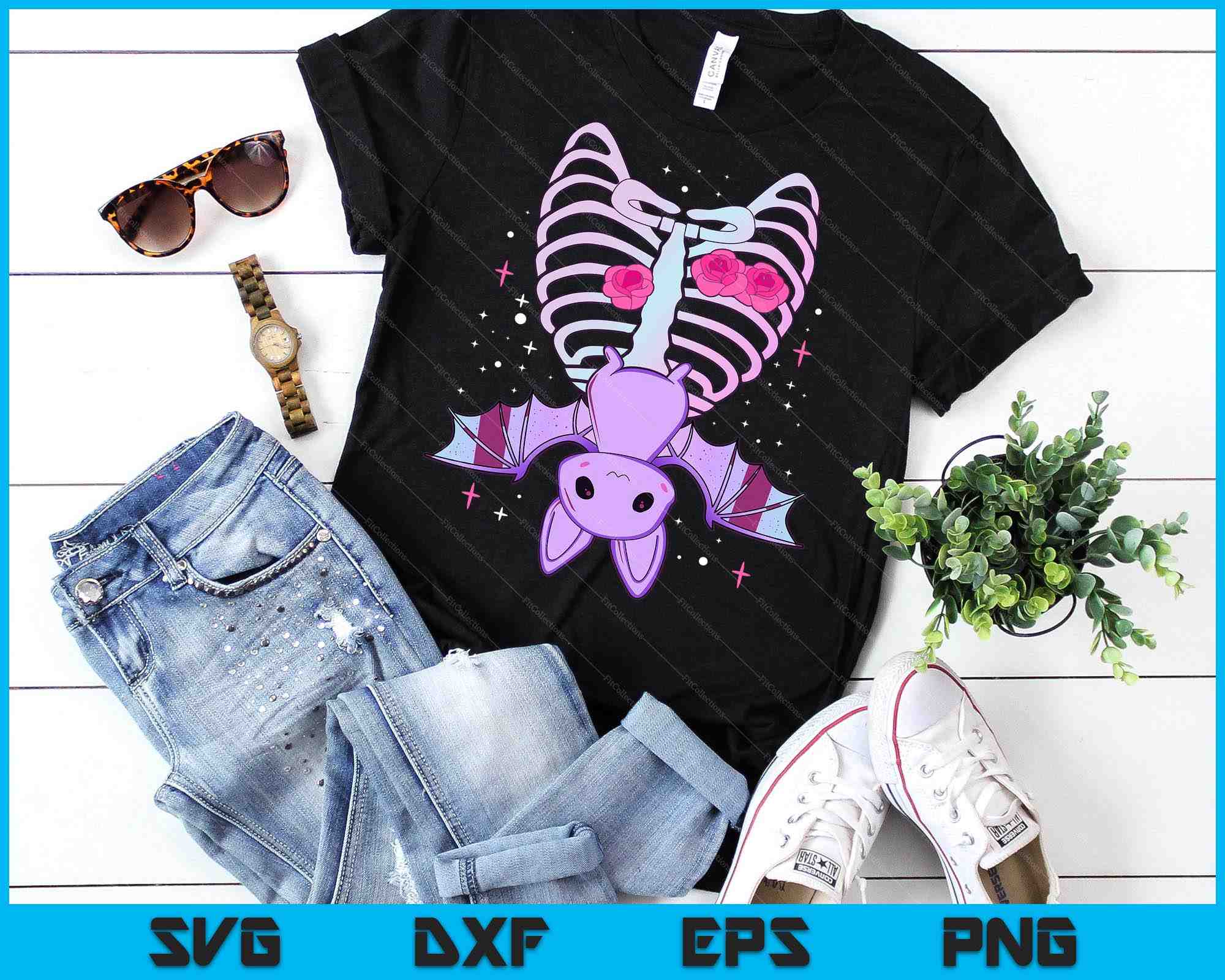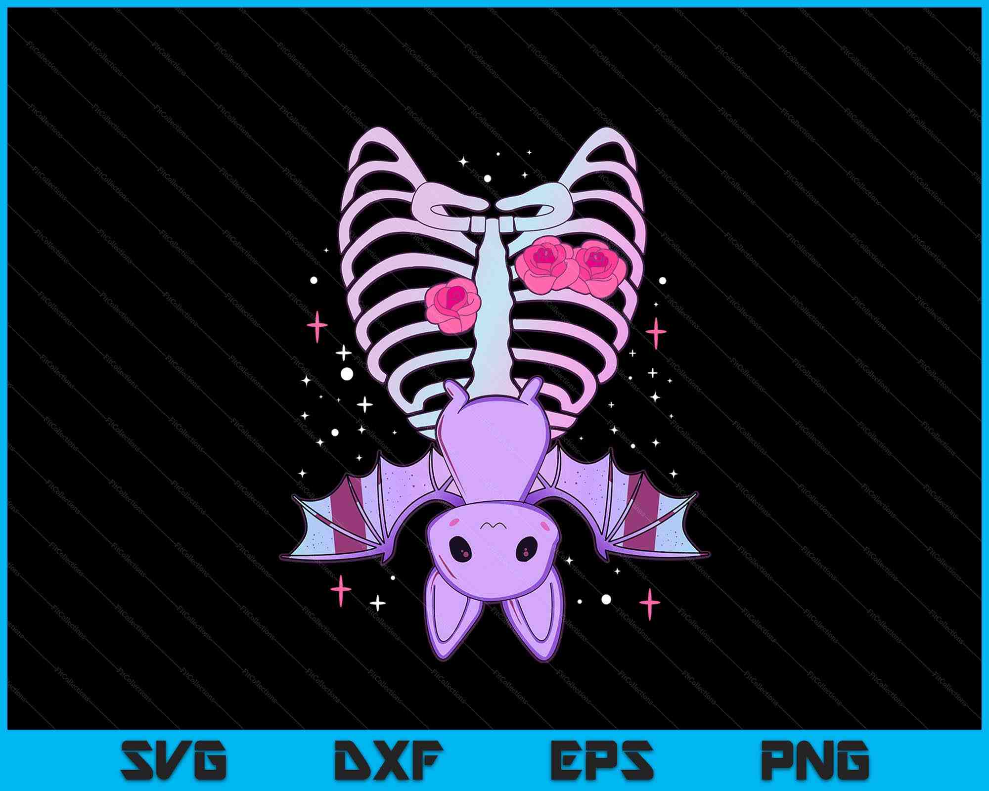 Kawaii Pastel Goth Cute Creepy Bat Skeleton SVG PNG Digital Printable Files
