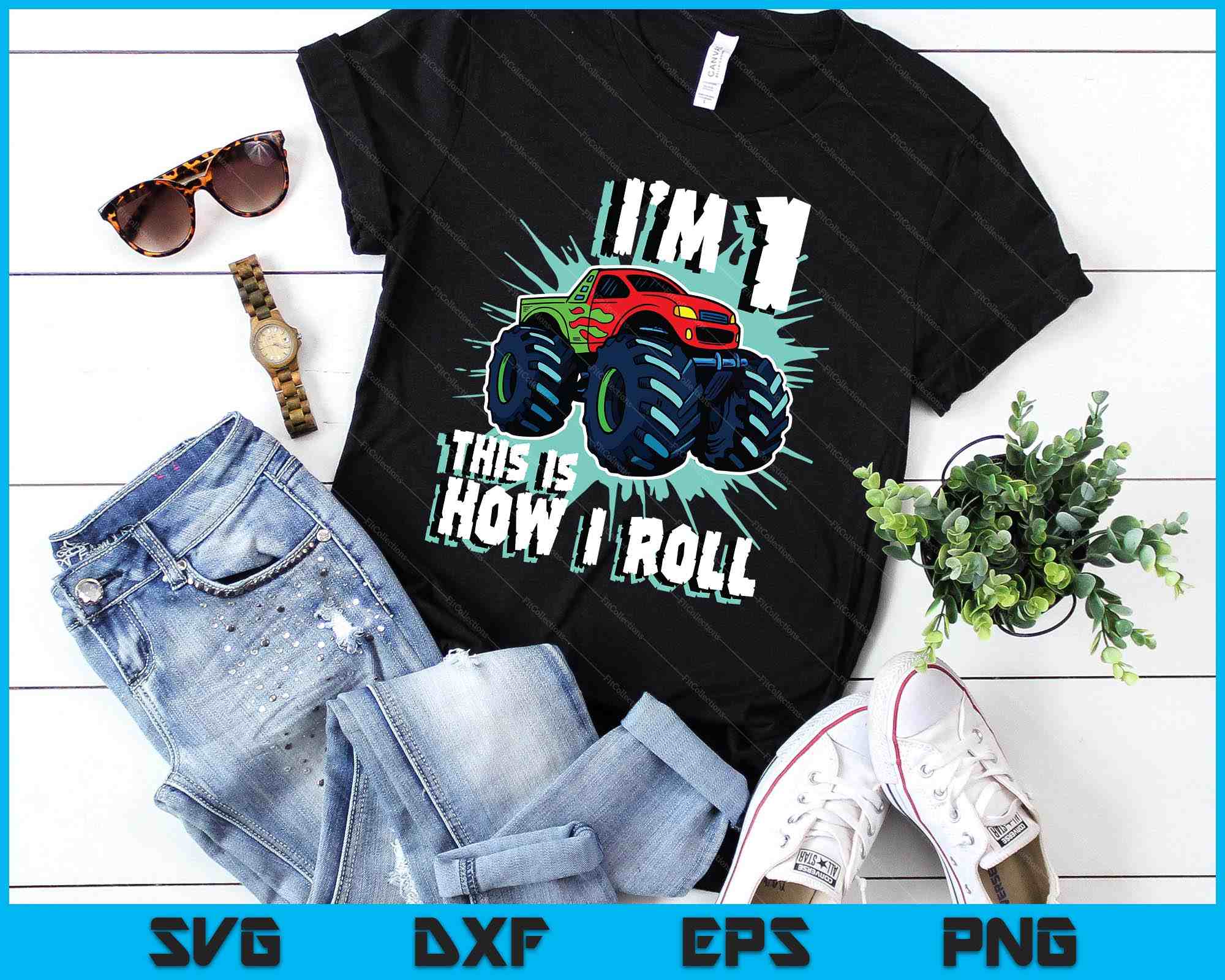 1 Year Old Boy Monster Truck Birthday Party 1st Boys SVG PNG Digital Printable Files