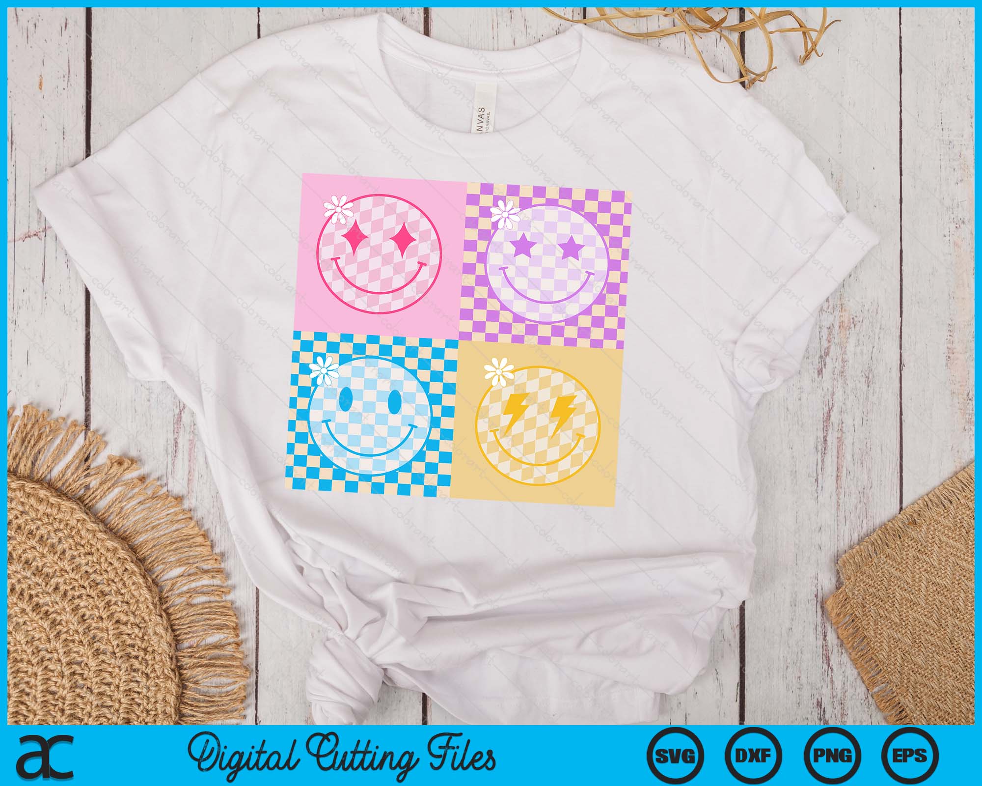 Retro Happy Face Checkered Pattern Smile Face Trendy SVG PNG Digital Printable Files
