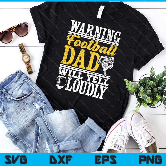 Warning Football Dad Will Yell Loudly Father SVG PNG Digital Printable Files
