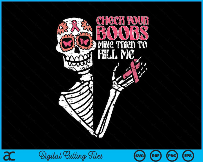 Sugar Skull Skeleton Breast Cancer Awareness Women SVG PNG Digital Cutting Files