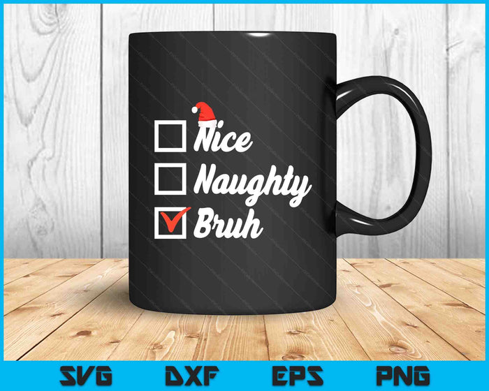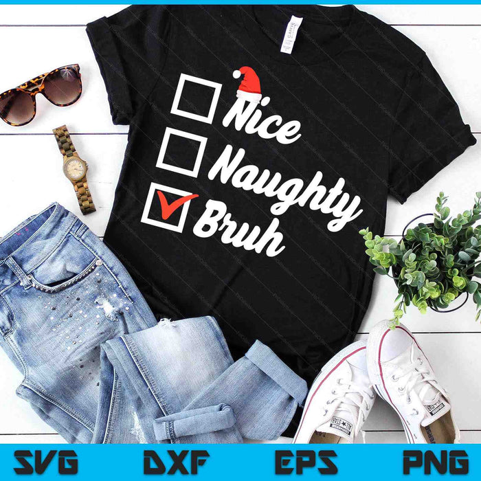 Christmas Nice Naughty Bruh Funny Xmas List SVG PNG Digital Printable Files