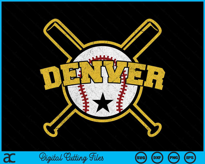Distressed Retro Denver Baseball SVG PNG Cutting Printable Files