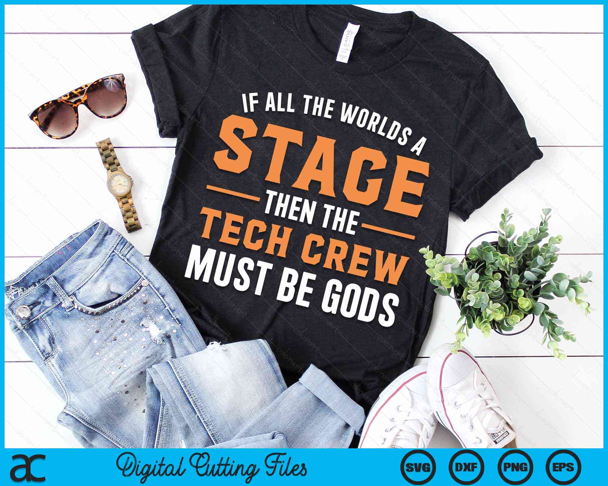 If All The Worlds A Stage Then The Tech Crew Must Be Gods Funny Theater Tech Crew Stage Crew SVG PNG Digital Cutting Files