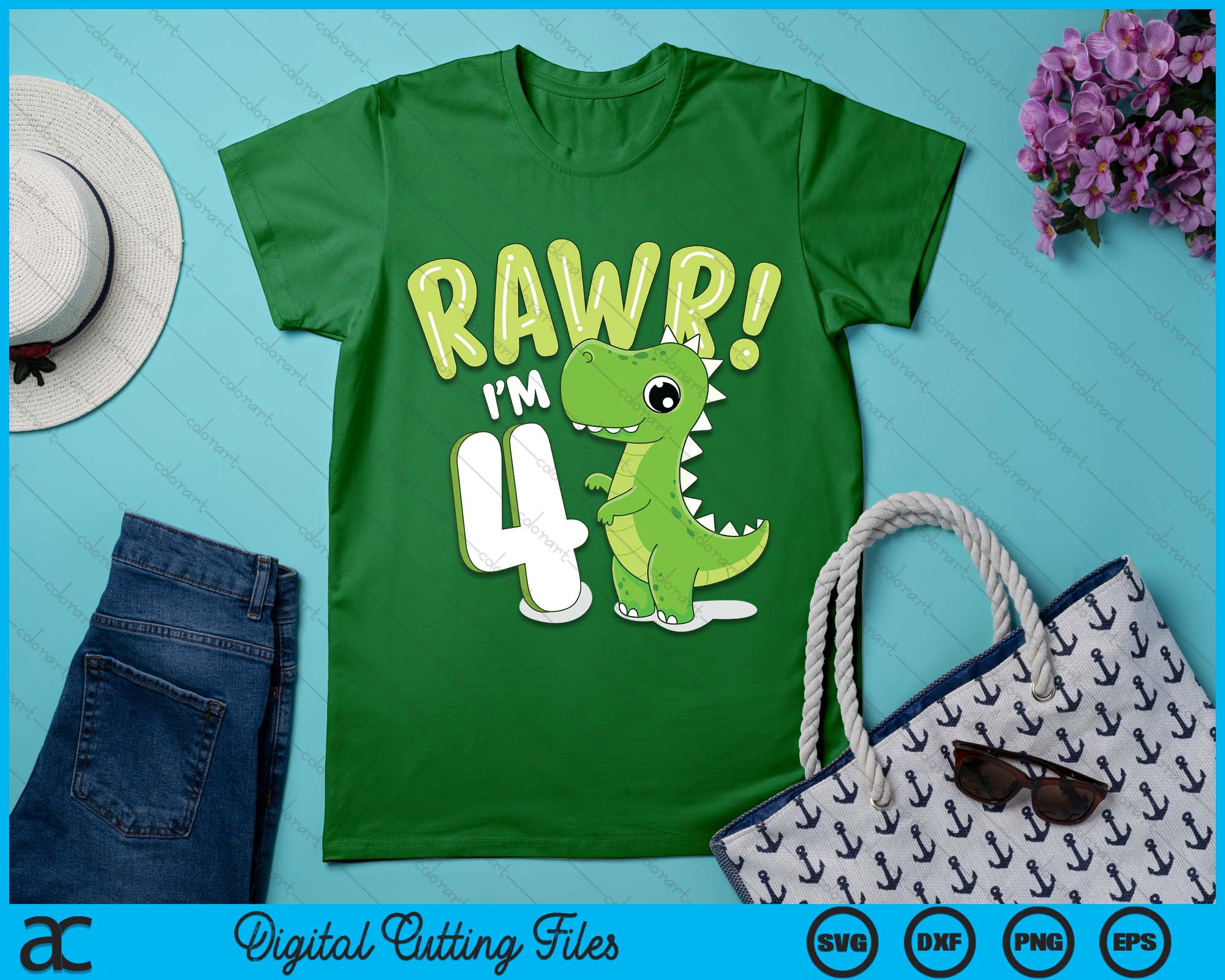 Kids Dinosaur 4th Birthday Outfit Dinosaur Birthday Party SVG PNG Digital Printable Files