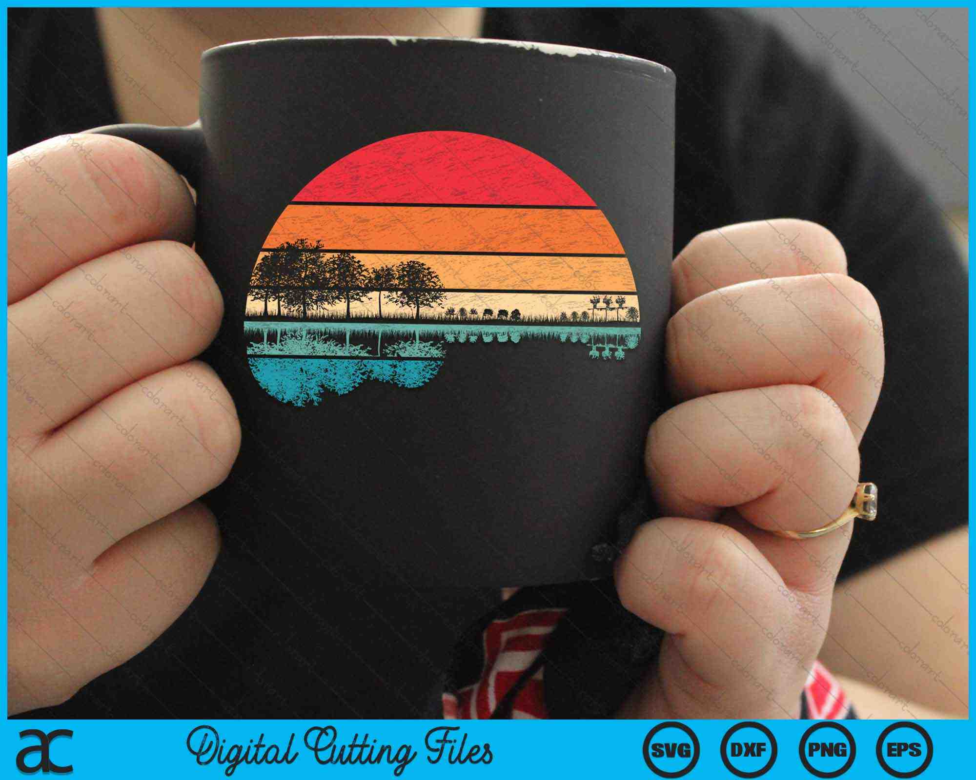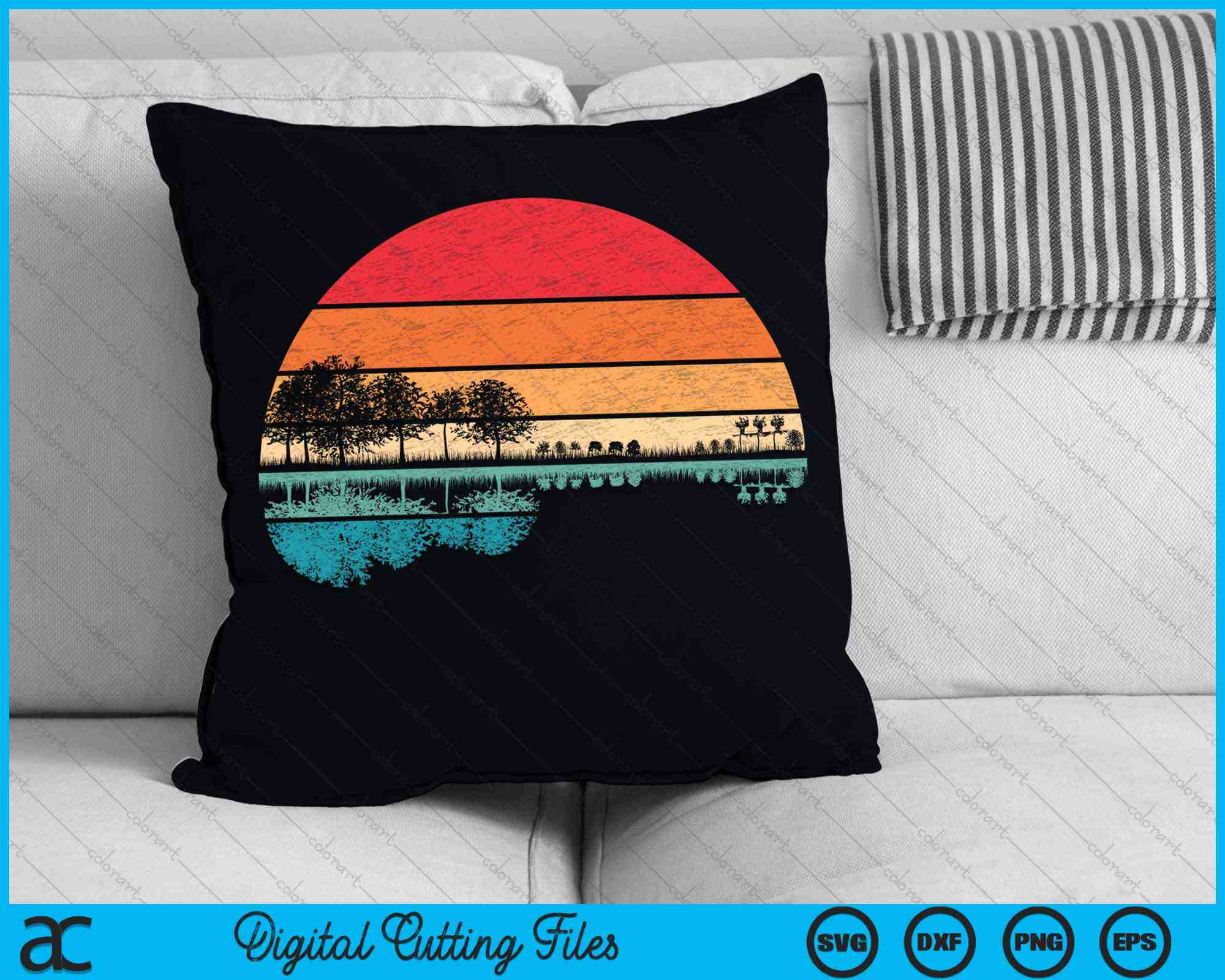 Retro Acoustic Guitar Lake Sunset Guitarist Music Lover Rock SVG PNG Digital Cutting Files
