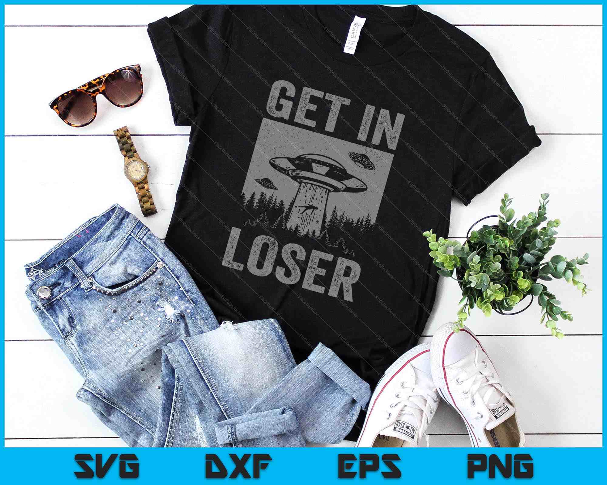 Retro Vintage Get In Loser Funny Ufo Alien Abduction SVG PNG Digital Printable Files