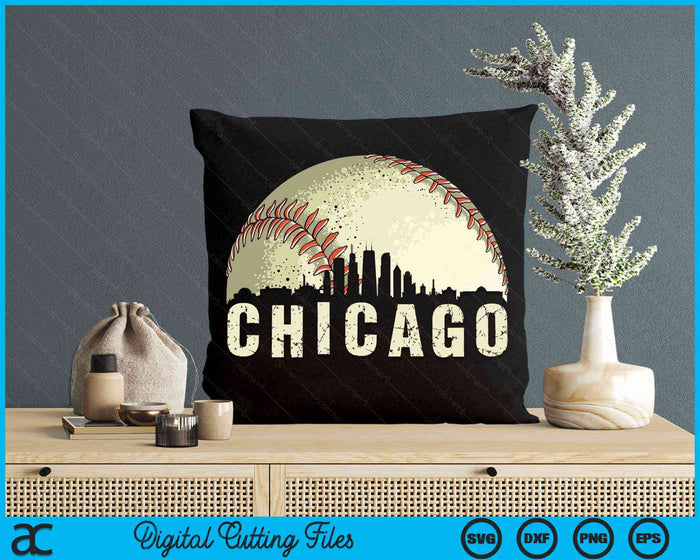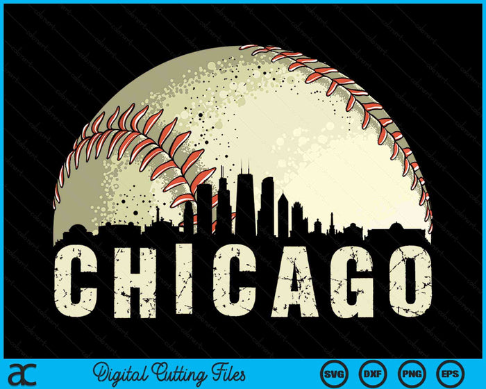 Vintage Chicago Cityscape Baseball Lover SVG PNG Digital Cutting Files