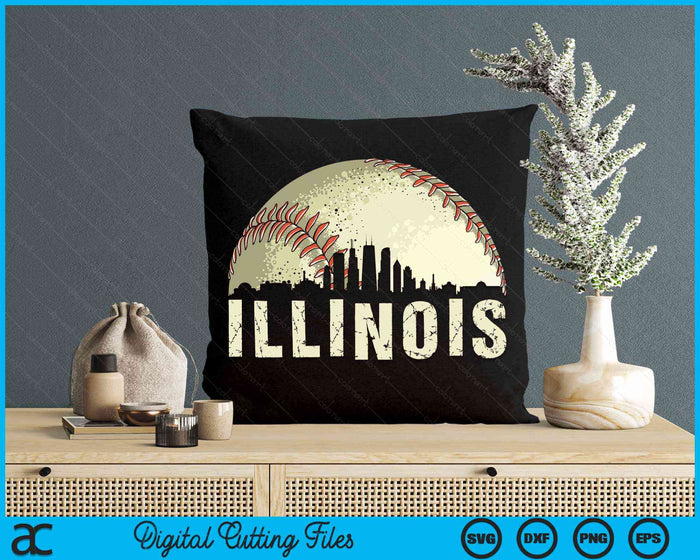 Vintage Illinois Cityscape Baseball Lover SVG PNG Digital Cutting Files