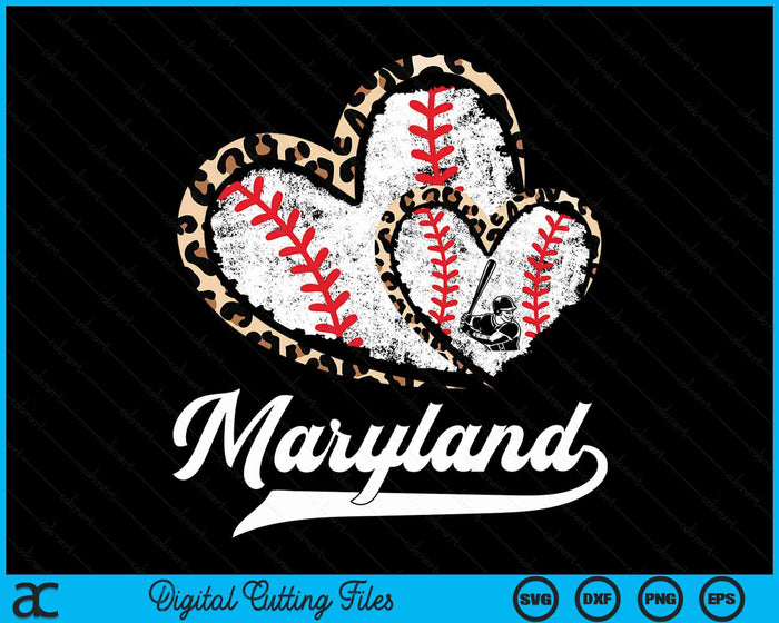 Vintage Maryland Baseball Leopard Heart Baseball Fans SVG PNG Digital Cutting Files