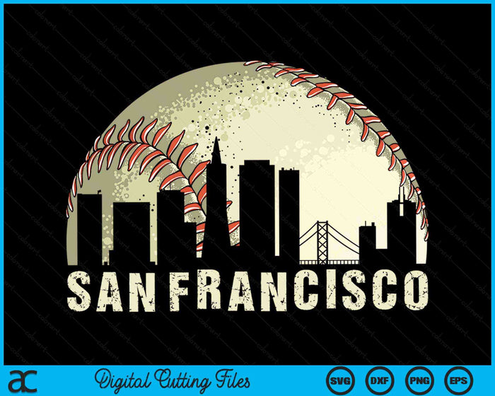 Vintage San Francisco Cityscape Baseball Lover SVG PNG Digital Cutting Files