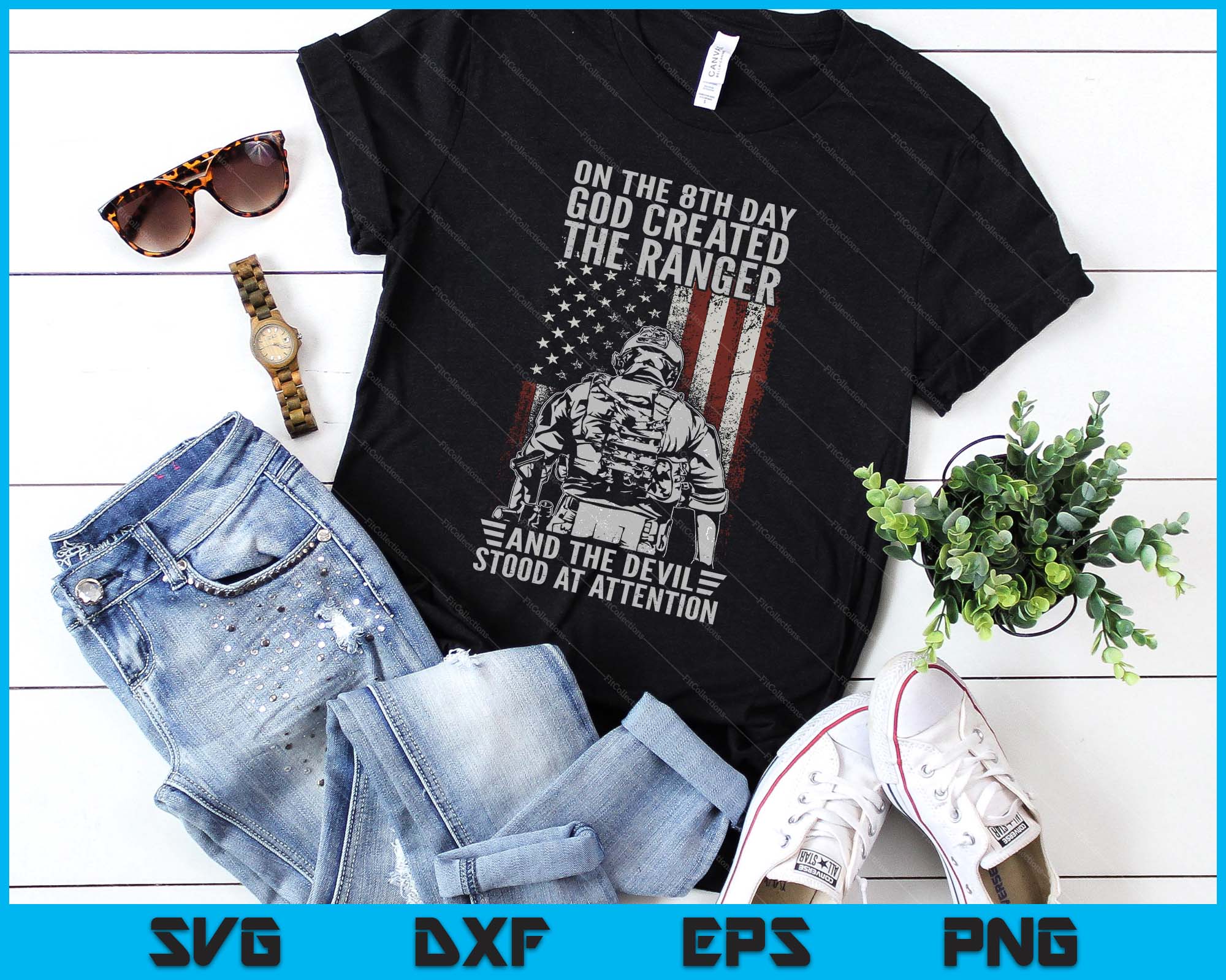 On 8th Day God Created Us Army Ranger Veteran Flag American SVG PNG Digital Printable Files