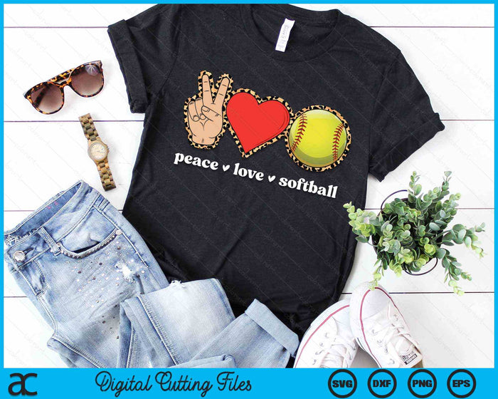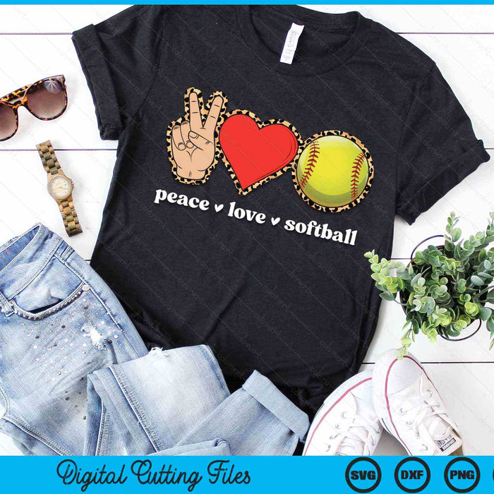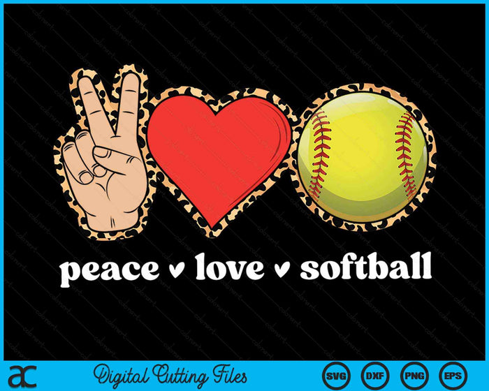 Peace Love Softball Cute Softball Lover Leopard Print SVG PNG Digital Cutting Files
