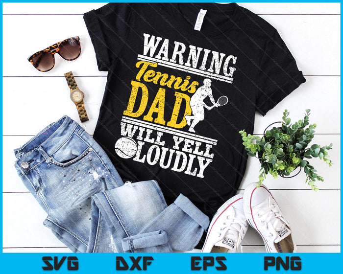 Warning Tennis Dad Will Yell Loudly Father SVG PNG Digital Printable Files
