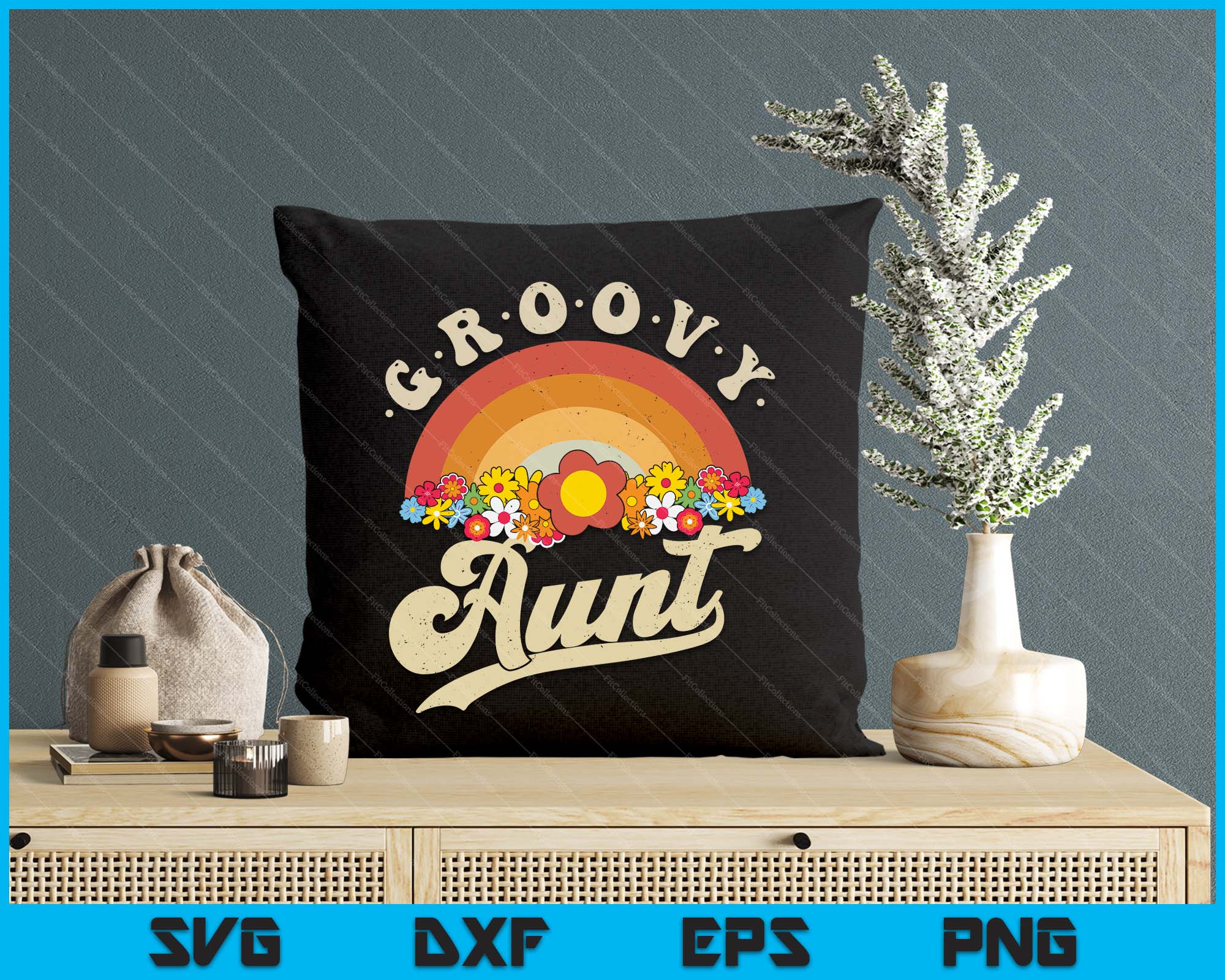 Groovy Aunt Retro Rainbow Colorful Flowers Design SVG PNG Digital Printable Files