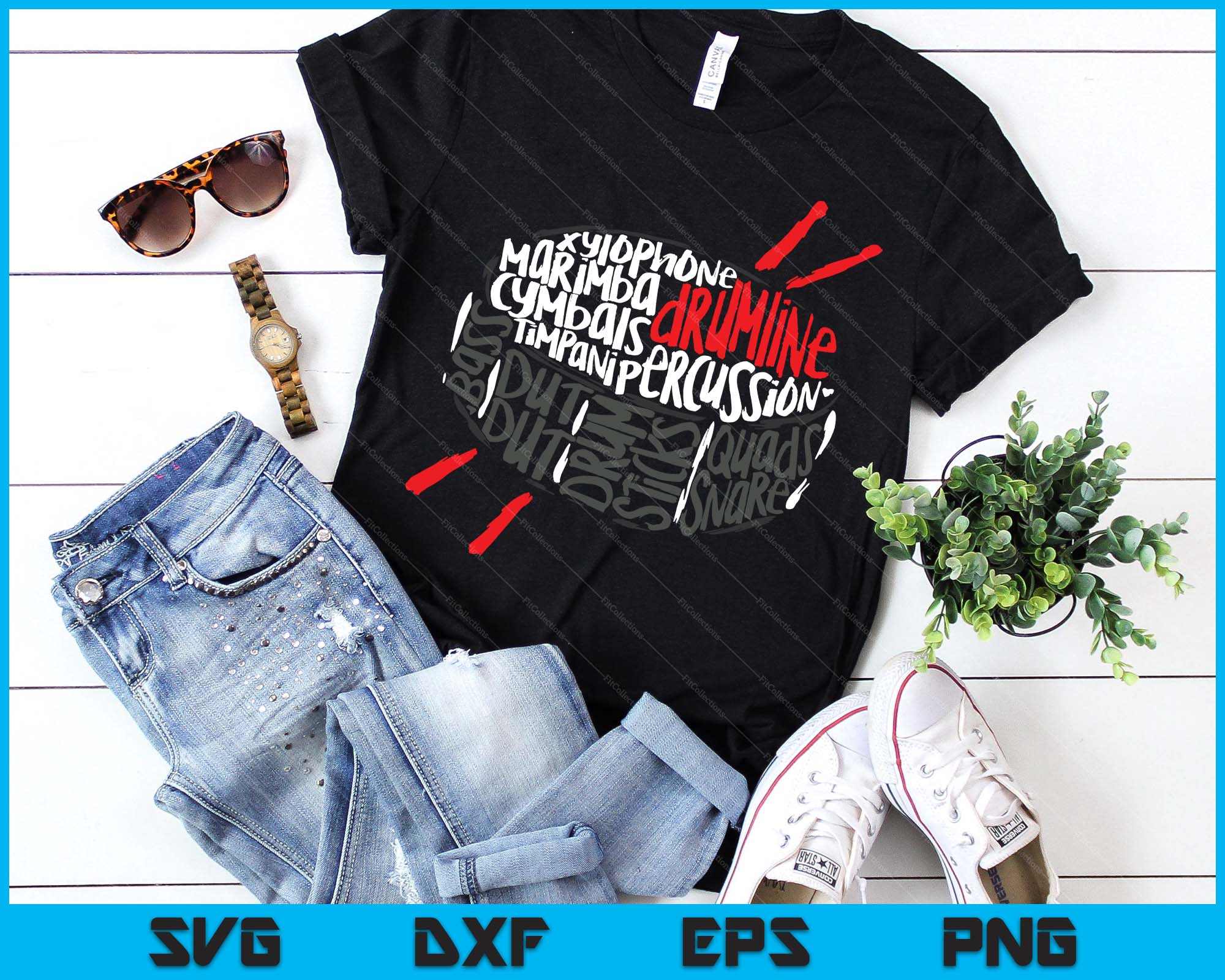 Drumline Marching Band Word Cloud Art SVG PNG Digital Printable Files