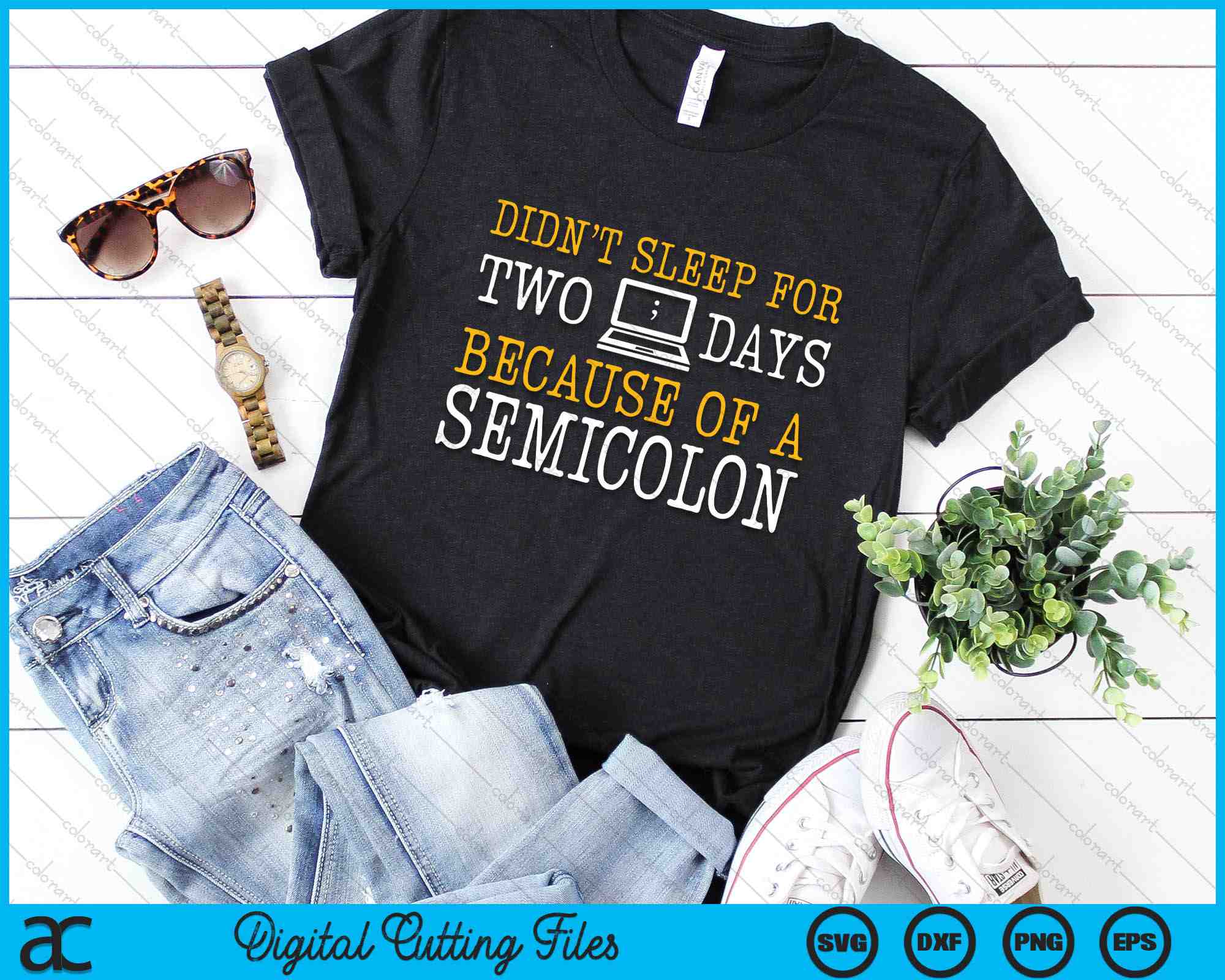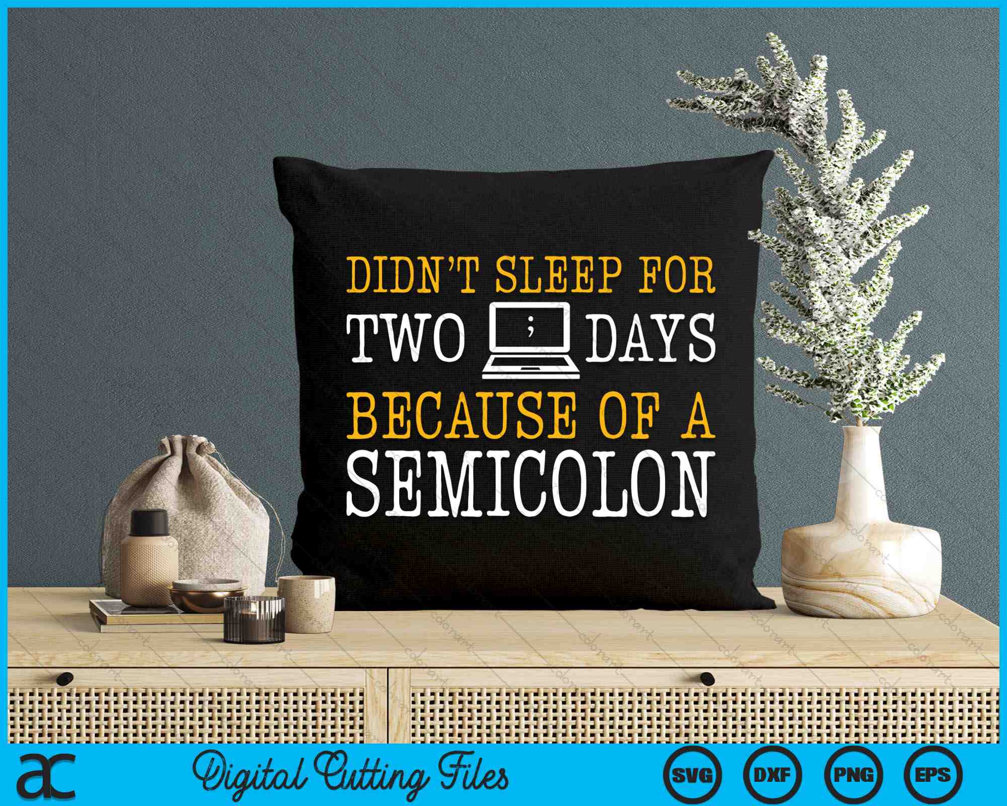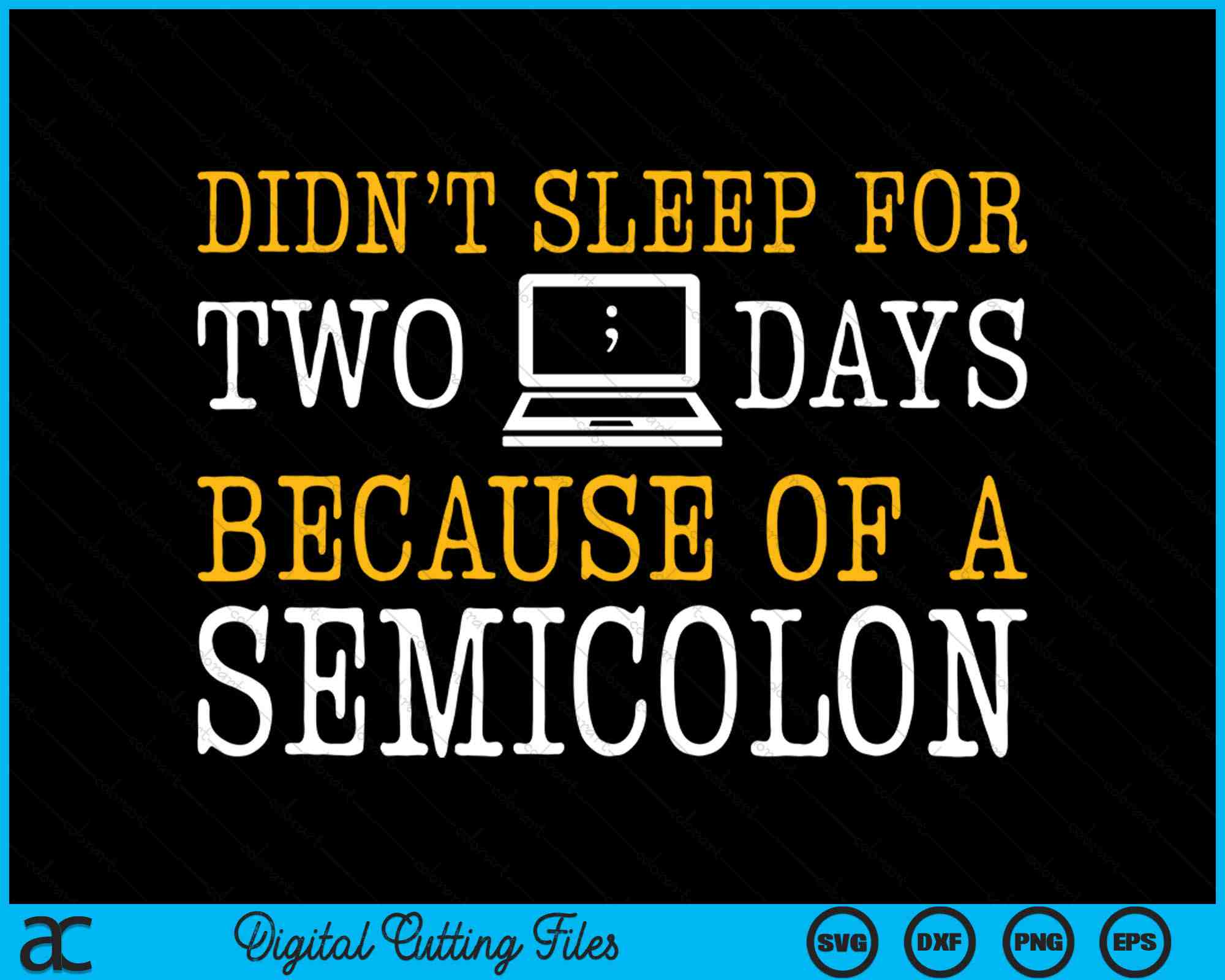 Ik heb twee dagen niet geslapen vanwege een puntkomma-programmeur SVG PNG digitale afdrukbare bestanden