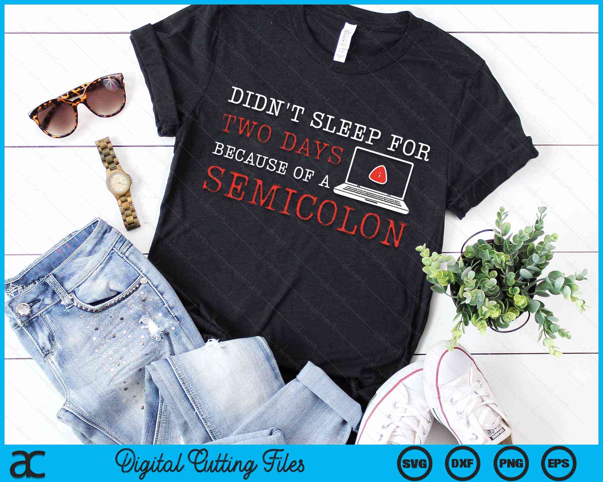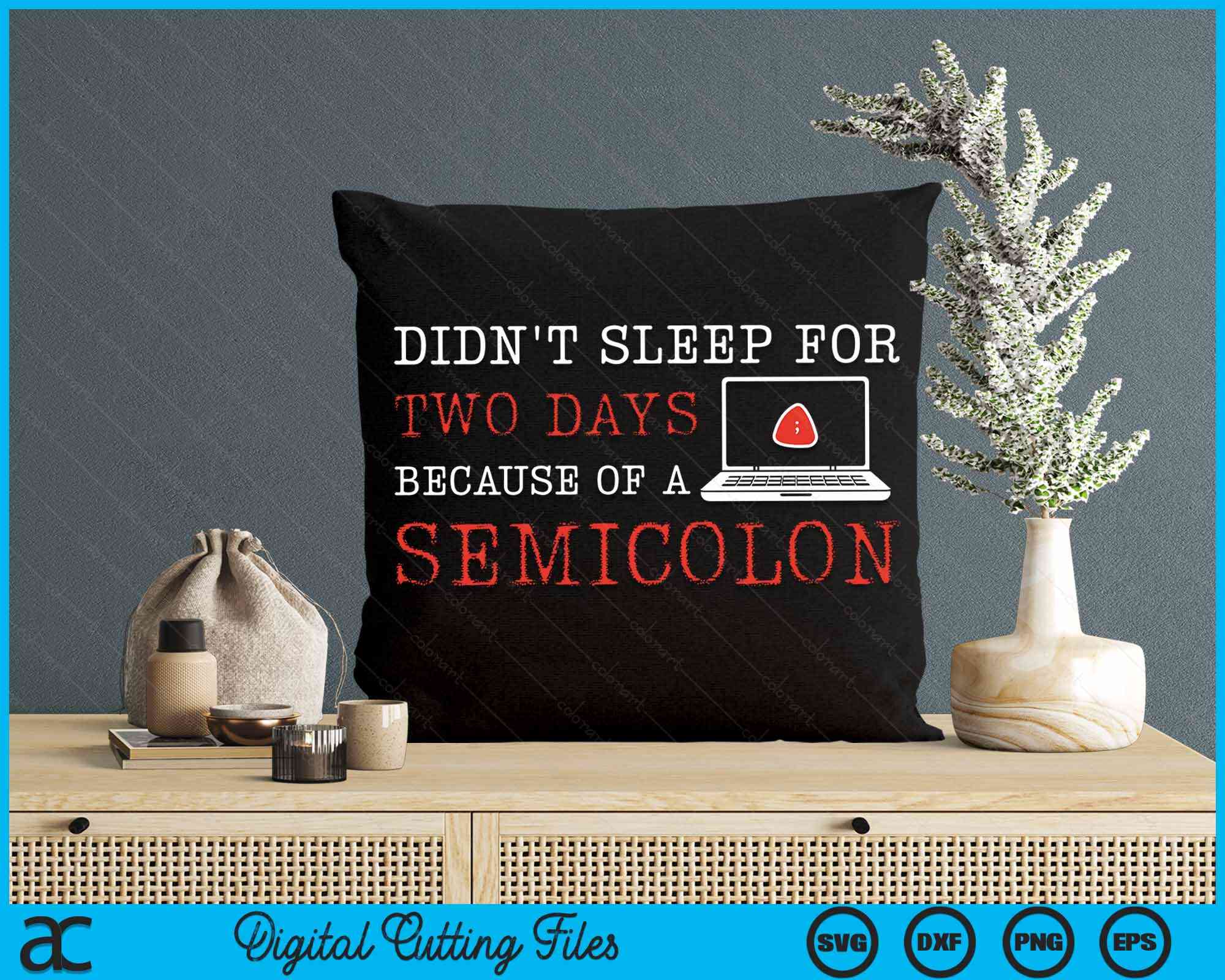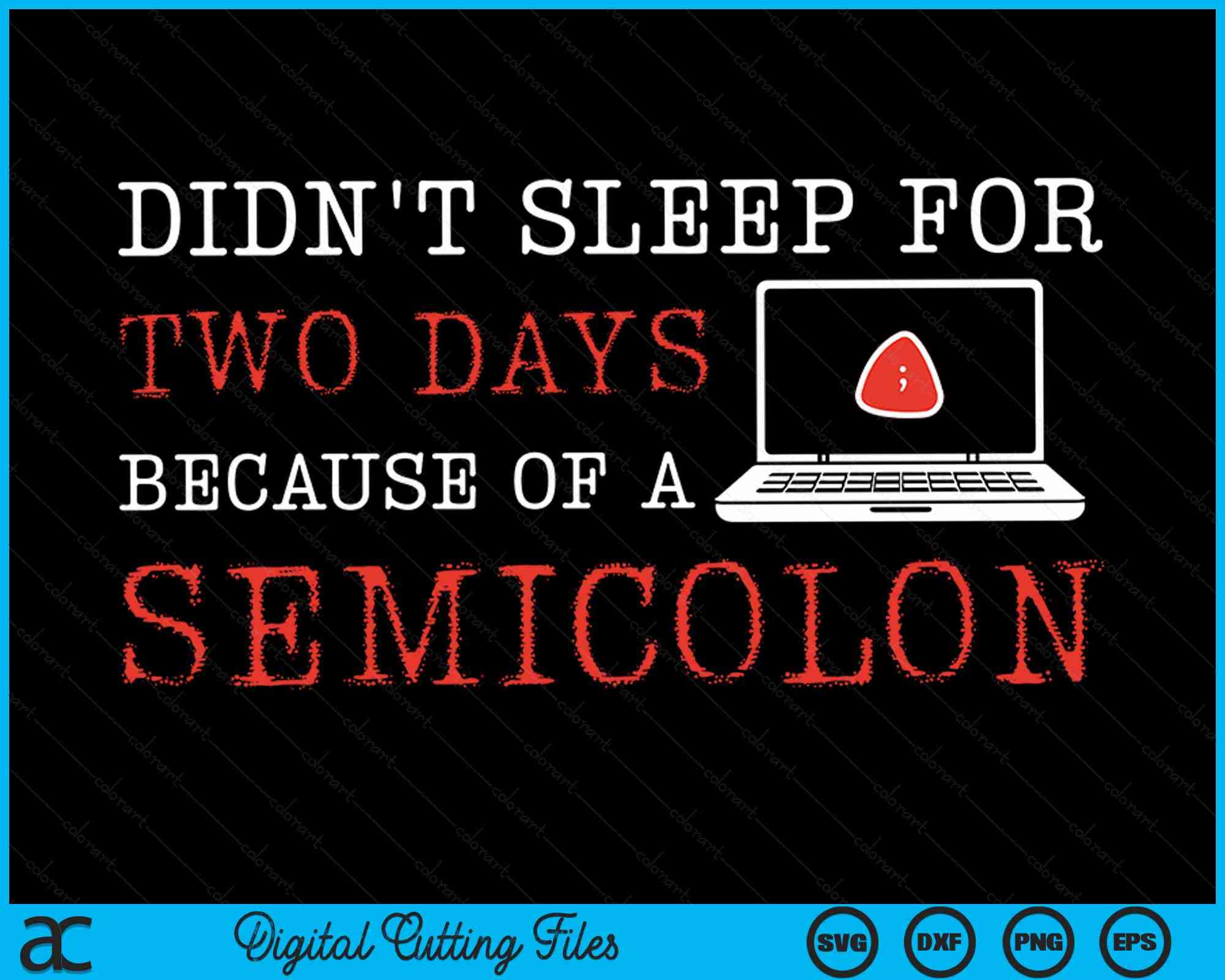 Ik heb twee dagen niet geslapen vanwege een puntkomma-programmeur Webontwikkelaar Coder SVG PNG digitale snijbestanden