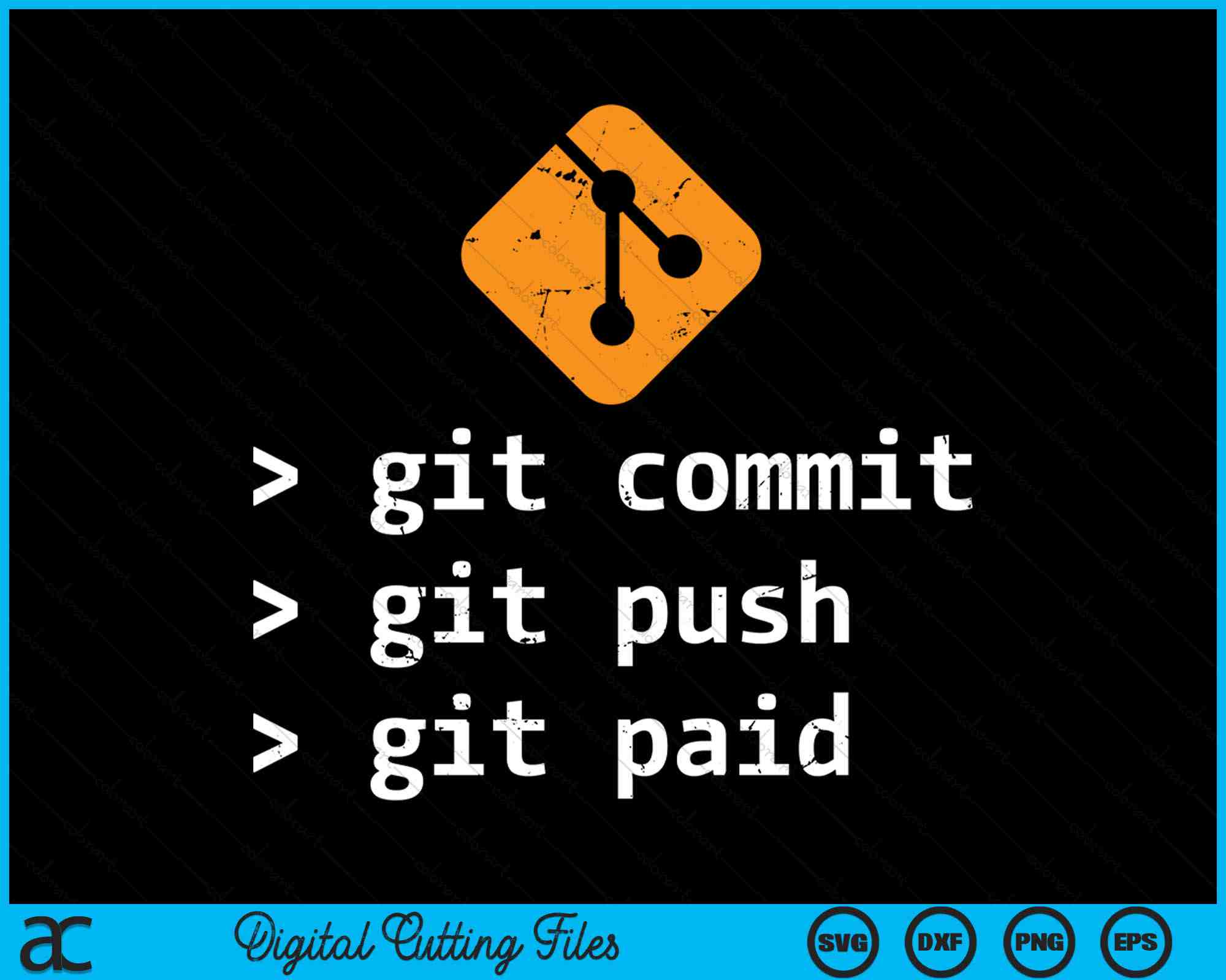 Git Commit Push betaalde programmering SVG PNG digitale snijbestanden