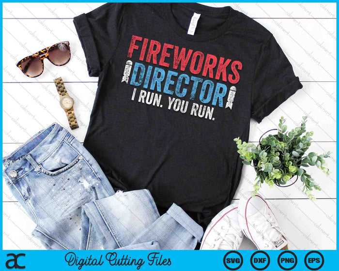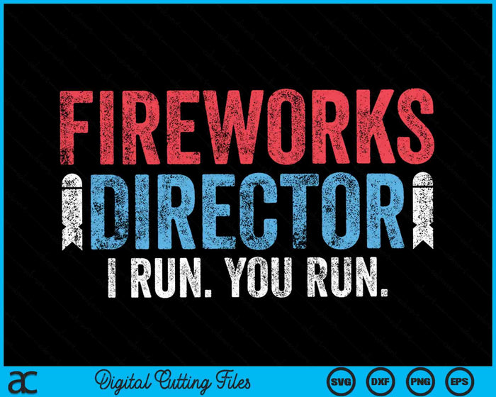 Fireworks Director I Run You Run 4 juli SVG PNG snijden afdrukbare bestanden