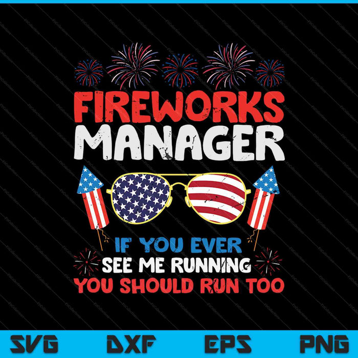 Vuurwerk directeur Run grappige vierde van juli SVG PNG digitale snijbestanden