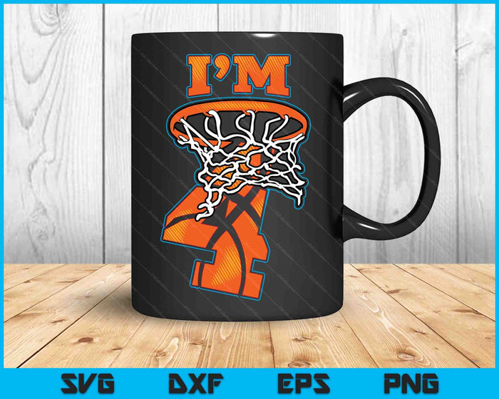 Kids basketbal ik ben 4 jongen meisje 4e verjaardag cadeau SVG PNG digitale snijbestanden