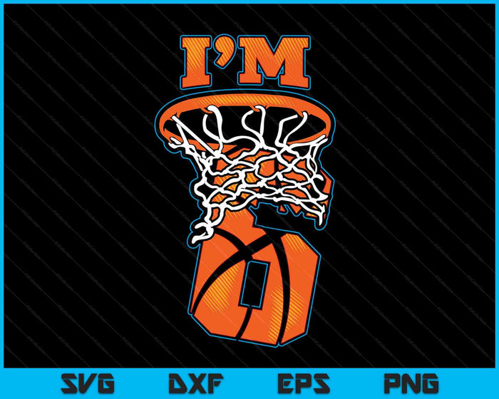 Kids basketbal ik ben 6 jongen meisje 6e verjaardag cadeau SVG PNG digitale snijbestanden