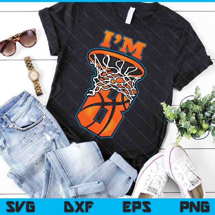 Kids basketbal ik ben 8 jongen meisje 8e verjaardag cadeau SVG PNG digitale snijbestanden